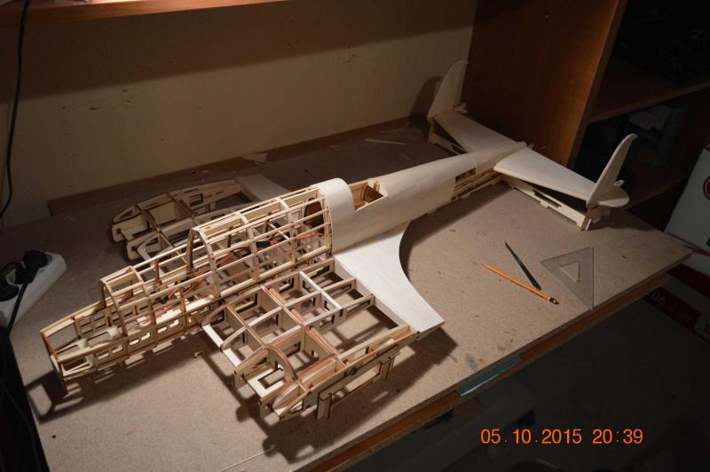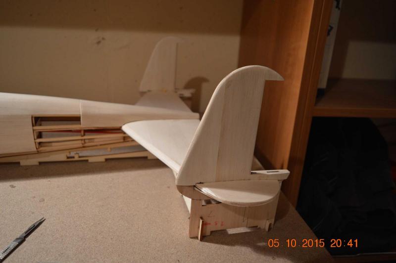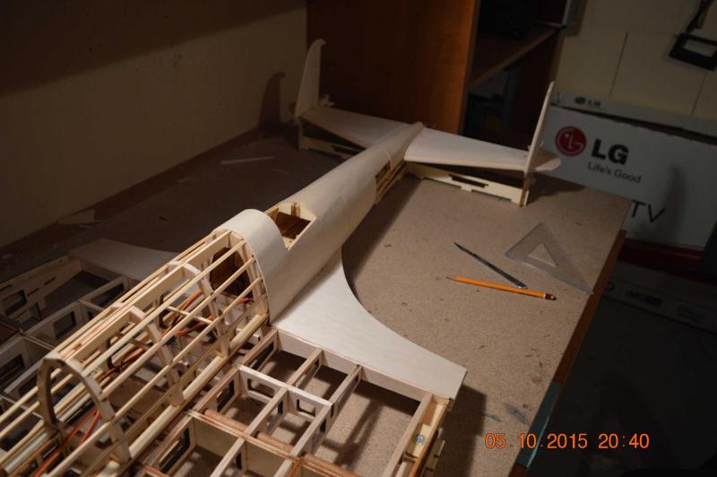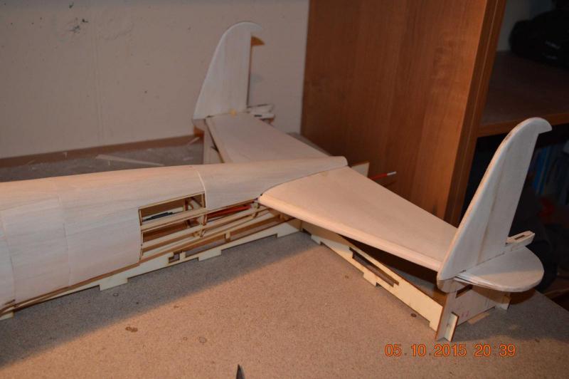 Moje postępy przy modelu: Waga w tym stanie co na zdjęciach to prawie 750 g (łącznie z serwem wysokości i dwoma serwami na kierunkach) dół kadłuba jeszcze nie oklejony ze względu na podpórki, które stabilizują model podczas pracy. Pozdrawiam -