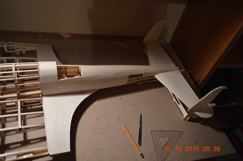 Szczerze mówiąc w ten sposób było mi po prostu łatwiej wymodelować poszczególne paski poszycia... oraz zasugerowałem się zdjęciem autora modelu -Tomka, które pozwoliłem sobie zamieścić poniżej: Nie sądziłem, że w ten sposób uzyskam fatalną jakość i kiepską wytrzymałość... od dołu i na reszcie modelu postaram się używać większych kawałków balsy. -