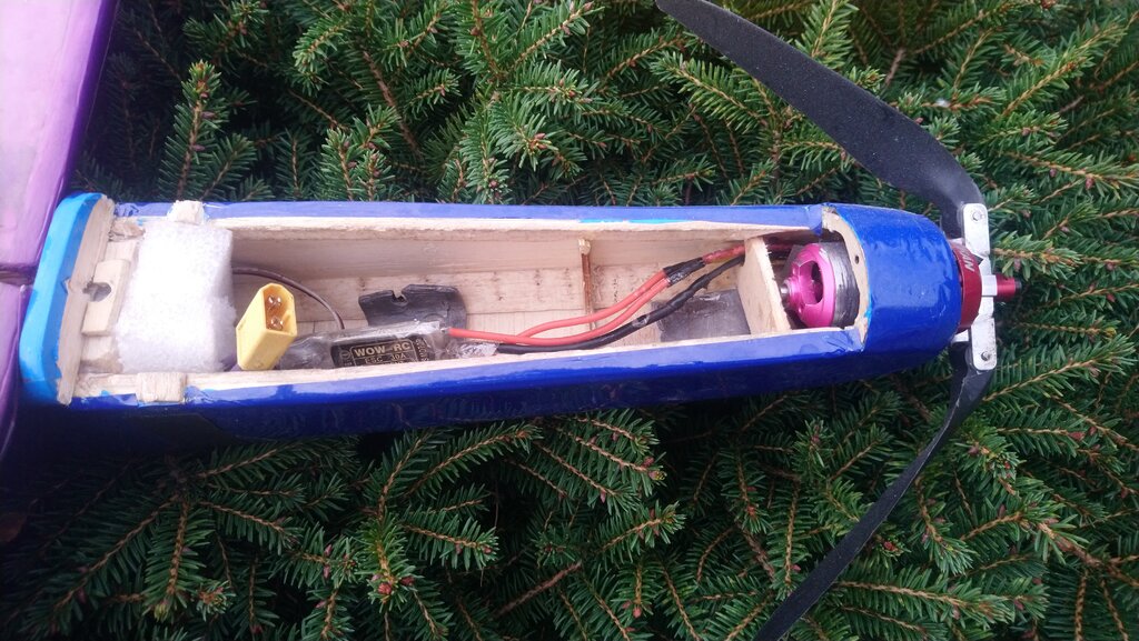 żeberka mocujące rurę miałem zrobione ze sklejki 3 mm licząc od kadłuba trzecie żeberko było z balsy -