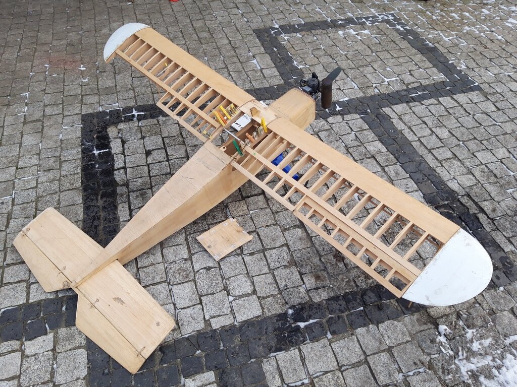 Oferuję to co na zdjęciach łącznie z używanym po przejściach silnikiem benzynowym Kalt KG-22 uruchamianym dzisiaj przy -6 stopniach Celsjusza. Video youtu.be/OdjkGV05P3c Silnik jest na Lordach ale ja bym go zamocował na sztywno na pierwszej wrędze. Jak widać model ma pewne braki ale jest do tego wszystkiego jeszcze plan wykonawczy w skali 1:1 (niewidoczny na zdjęciach) – można dorobić każdy element. Tego typu małe silniki benzynowe (Kalt 22, Al-Ko 24) z powodzeniem stosowałem w kilku typach dużych modeli : Big Lift, Telemaster, Precedent 240. Niektóre z tych modeli startowały nawet z ręki i to z tymi „ciężkimi” silnikami youtu.be/rmUqj-Dxkm4 Ten Big Lift który oferuje raczej z ręki nie wystartuje bo ma oryginalny Multiplex-a bardziej masywny kadłub robiony pod holownika. Te silniki są praktycznie bezobsługowe – zakręcisz śmigłem i lecisz. Podwozie nie jest oryginalne , rysunek właściwego jest w planach można sobie zrobić z drutu chyba fi5mm. Tu inny silnik Kalt youtu.be/mYcZ4u_ylZU Cena 680zł za wszystko łącznie z kurierem. Chociaż wolałbym odbiór osobisty bo organizowanie tak dużego pudła zajmie mi 2-3 dni. Jakieś listewki balsowe 8x8 na zrobienie usterzenia też dokładam.-