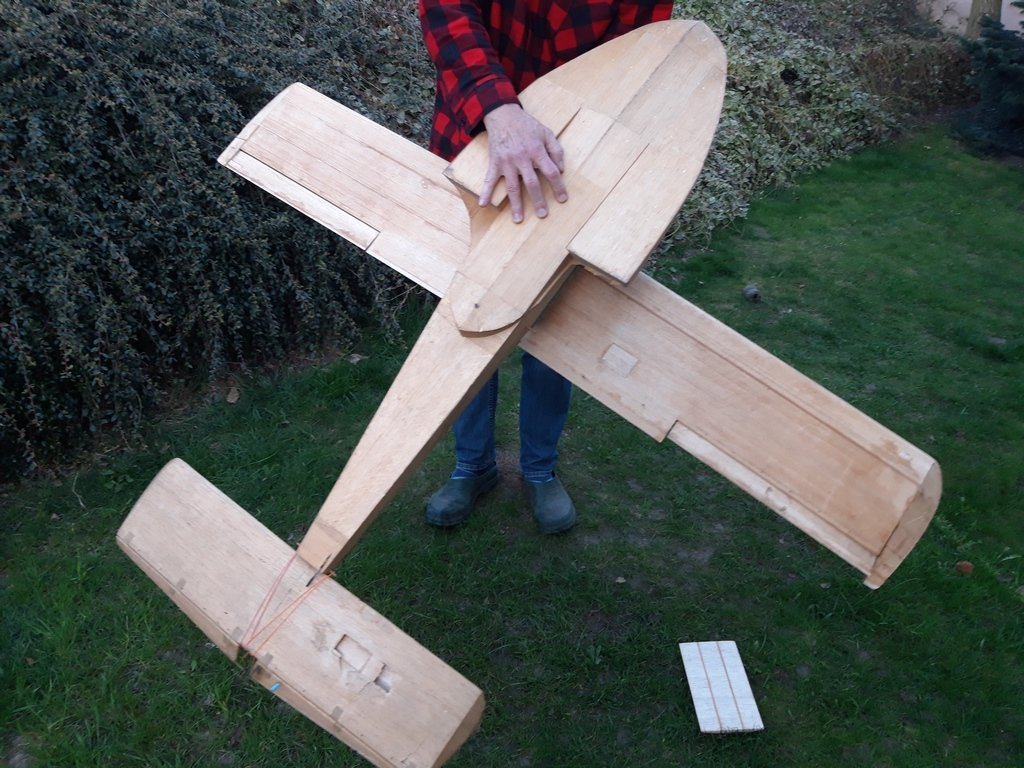 Oferuję do sprzedaży niedokończony model o rozpiętości skrzydeł ok. 235cm i masie w tej chwili 4900G. Od przekładania z kąta w kąt porobiły się już wgniotki w balsie. Amortyzowane podwozie główne, skrętne kółko ogonowe, sloty jeszcze nie są wklejone. Cena 980zł już z wysyłką kurierem (duża paczka) lub oczywiście odbiór osobisty - mile widziany.-