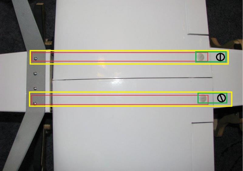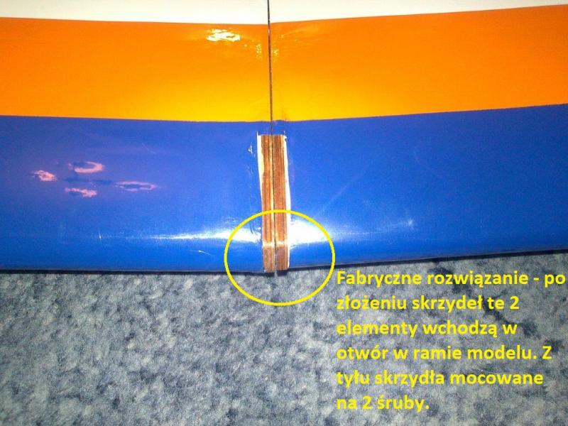 Witaj, z tytułu warunków lokalowo-metrażowych nie mam modelu "pod ręką". Jak pogoda będzie słaba to pewnie w weekend coś podłubię. Załączam fotkę z internetu: Dodatkowo na tych stronach w manualu: 8,10,11,16 http://manuals.hobbico.com/gpm/gpma1201-manual.pdf Pod plastikowe śruby mocujące (bliżej krawędzi spływu) dam jeszcze jakieś podkładki (na stałe) - żeby nie masakrować folii.