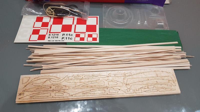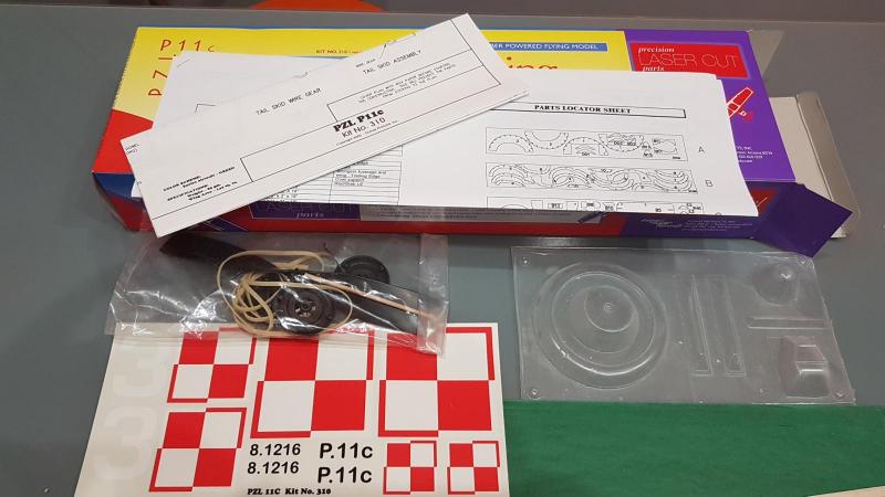 Ojcowie zabierzcie dzieci do domów, matki zagońcie kury do kurników. Mleko się warzy, kury przestają się nieść. Robertus będzie kleił model z zapałek! Ale spokojnie, spokojnie. Model kupiłem aby przyozdobił modelarnię. Nigdy nie poleci, choć mógłby. Nie będzie też oklejony aby pokazać piekno szkieletu modelu konstrukcyjnego. Poniżej zawartość pudełka. Rozpiętość: 76cm Napęd oryginalnie na gumę.