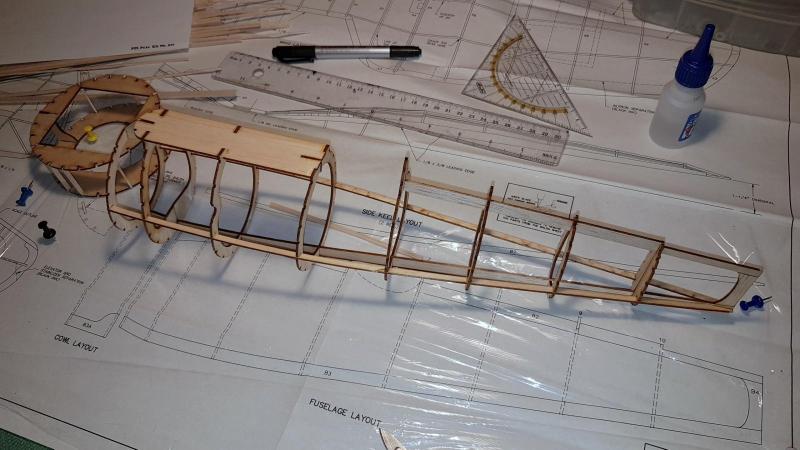 Po kolejnych paru godzinach pracy wygląda tak. Model jest calusieńki z balsy, nawet dźwigary. Najcieńsze elementy to listewki balsowe 1,5mm W międzyczasie dorabiałem drugi raz statecznik bo wysmyknął mi się z rąk i za mocno go złapałem. Hmm, nie wróżę długiego życia temu modelowi, nawet jako dekoracja. Waga takiego to zaledwie 72 gramy Rozpiętość 77cm Długość 53cm Jeszcze muszę popracować nad kołpakiem śmigła. W planach jest on opcjonalny i nie ma zaznaczonych nacięć pod łopaty co trochę komplikuje sytuację. Pozostaje jeszcze kwestia: czy malować wszystko srebrnym lakierem czy bezbarwnym?