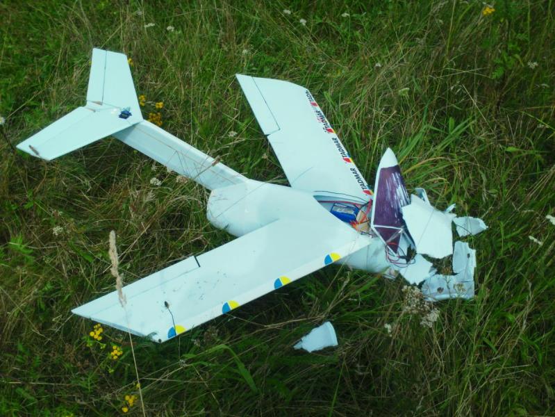 Dodam od siebie, że oblot składał się z trzech lotów i trzech nieplanowanych lądowań W tym jedno w odległości 600m. Tak prezentował sie przed oblotem śmigiełko w środku Myślę, że ten napęd ma przyszłosć. A tak po oblotach. W sumie tragedii nie było, ale Sławek zdecydował się na kasacje projektu. -