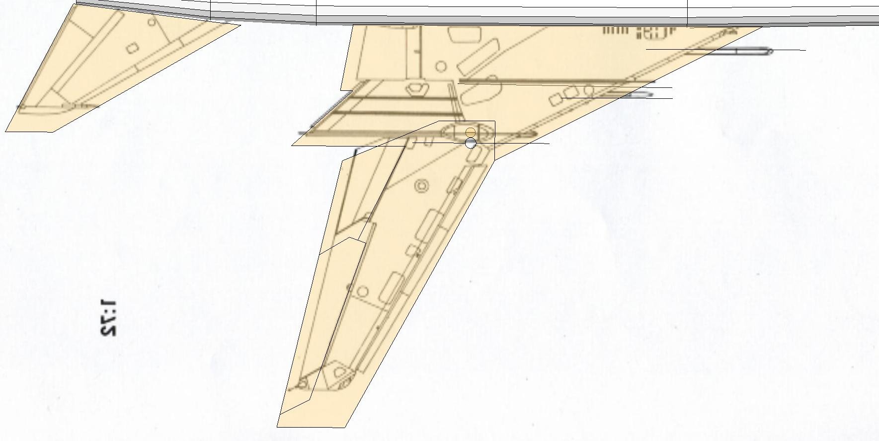 Mój pomysł na sterowanie to, krótkie lotki na skrzydłach i delikatnie zmiksowane lotki ze sterowaniem płytowym. Wtedy przy dużej rozpiętości, przy wolnych lotach lotki na skrzydłach powinny dobrze działać, a przy szybszych przelotach ze złożonymi skrzydłami, skuteczność lotek wzmocni usterzenie płytowe. Myślę, że nie będę robił modelu od razu na "gotowo". Zrobię najpierw prototyp, na którym będę testował różne rozwiązania. Szukam dokumentacji obrazkowej polskich napisów eksploatacyjnych na su-22. Postanowiłem powiększyć proporcjonalnie stery wysokości i skrzydło