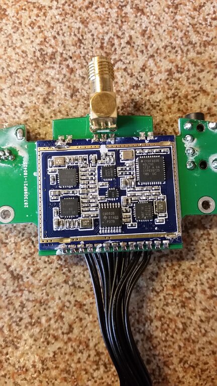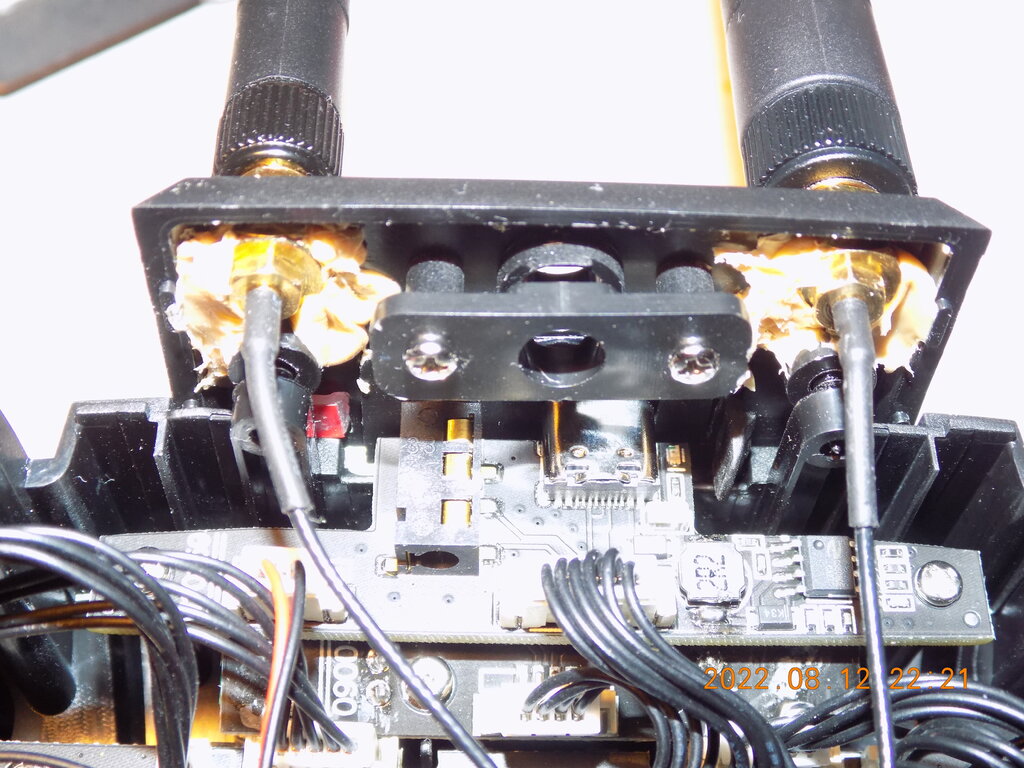 Może komuś ta wiedza się przyda. JP5IN1 działa w Radioking tx18S lite (na razie sprawdzone tylko 2.4GHz). Wystarczy moduł podmienić i przeflaszować nowym wsadem z opentx. Podmieniłem także pigtaile, bo oryginalnie było SMA dla 868MHz (czyli dziura), a dla 2.4GHz wewnętrzna antena. Zamieniłem na dwa RPSMA (bolec w złączu radia), jak na zdjęciu. Będzie można lepszą antenę na 2.4GHz, bo ta co była (płyteczka) to tylko do latania koło nogi. Przy okazji chyba znalazłem dokładnie ten sam klei, którym producent zabezpiecza złącza na PCB. Oryginalne zabezpieczenie rozpuszcza się w rozpuszczalniku chlorokauczukowym, a ten na zdjęciu jest praktycznie w użyciu i konsystencji po wyschnięciu taki sam. Dwie anteny są obok siebie. Jedna 868MHz, a druga 2,4GHz. Nie chciałem wiercić w obudowie i to jest chyba najlepsze wyjście. Przy okazji poprawiłem także kable do gimbaali, które są za krótkie od strony złącza nadajnika (bardzo ściągnięte) i trzeba je trochę przesunąć (wyciągnąć), aby miało co pracować (zdjęcie przed i po, chyba wszystkie Radioking tak mają!). Zabezpieczyłem klejem także lutowanie. Będzie czas to sprawdzę zasięgi na poszczególnych pasmach, ale powinno być znacznie lepiej szczególnie na 2,4GHz (teraz mam antenę 6dbi na 2,4GHz). Zamówiłem także antenę 18dbi na 2,4GHz. Ciekawy jestem ile wyjdzie w km zasięgu, ale to dopiero za miesiąc jak dojdzie.