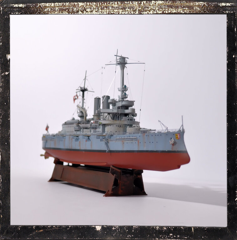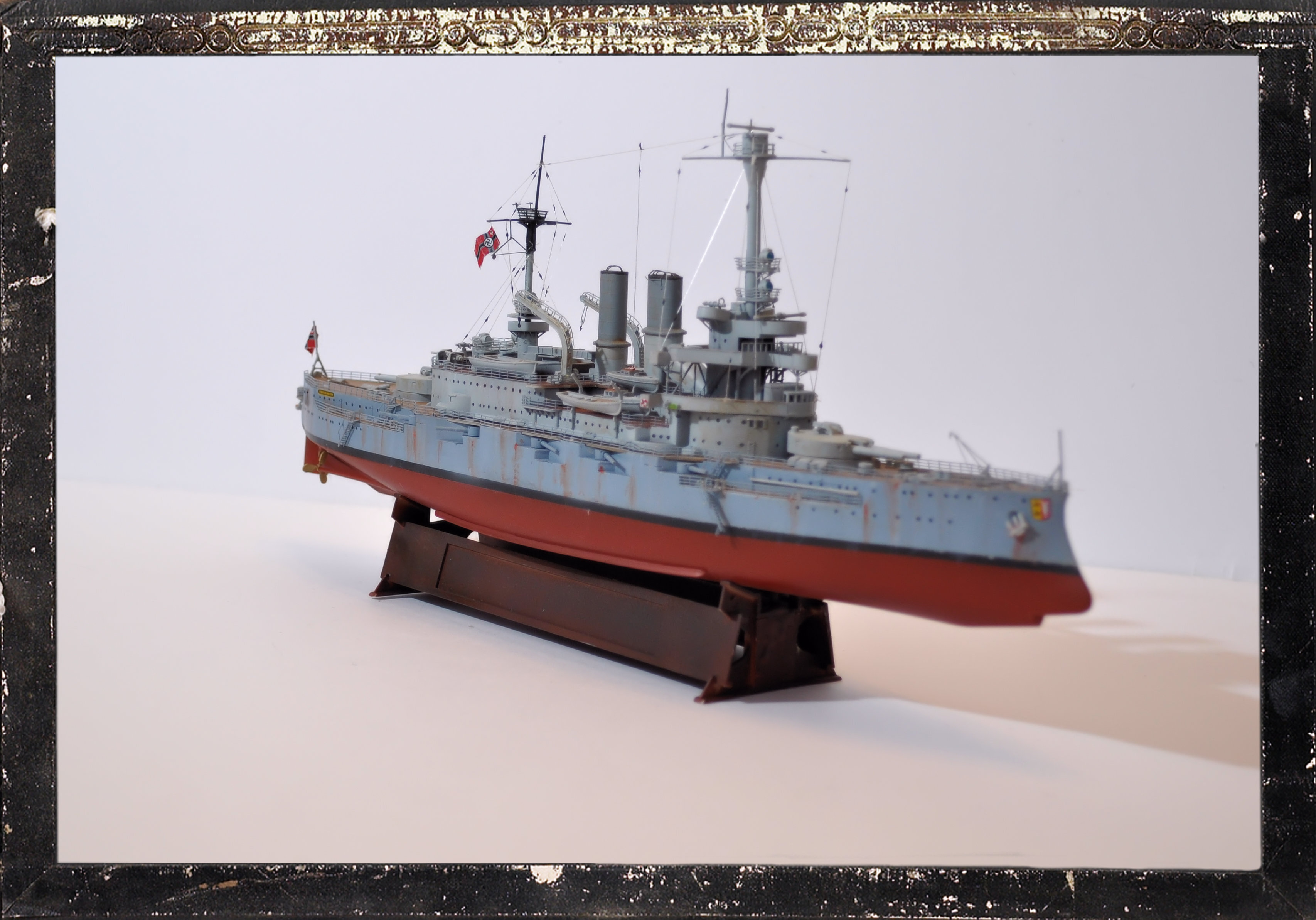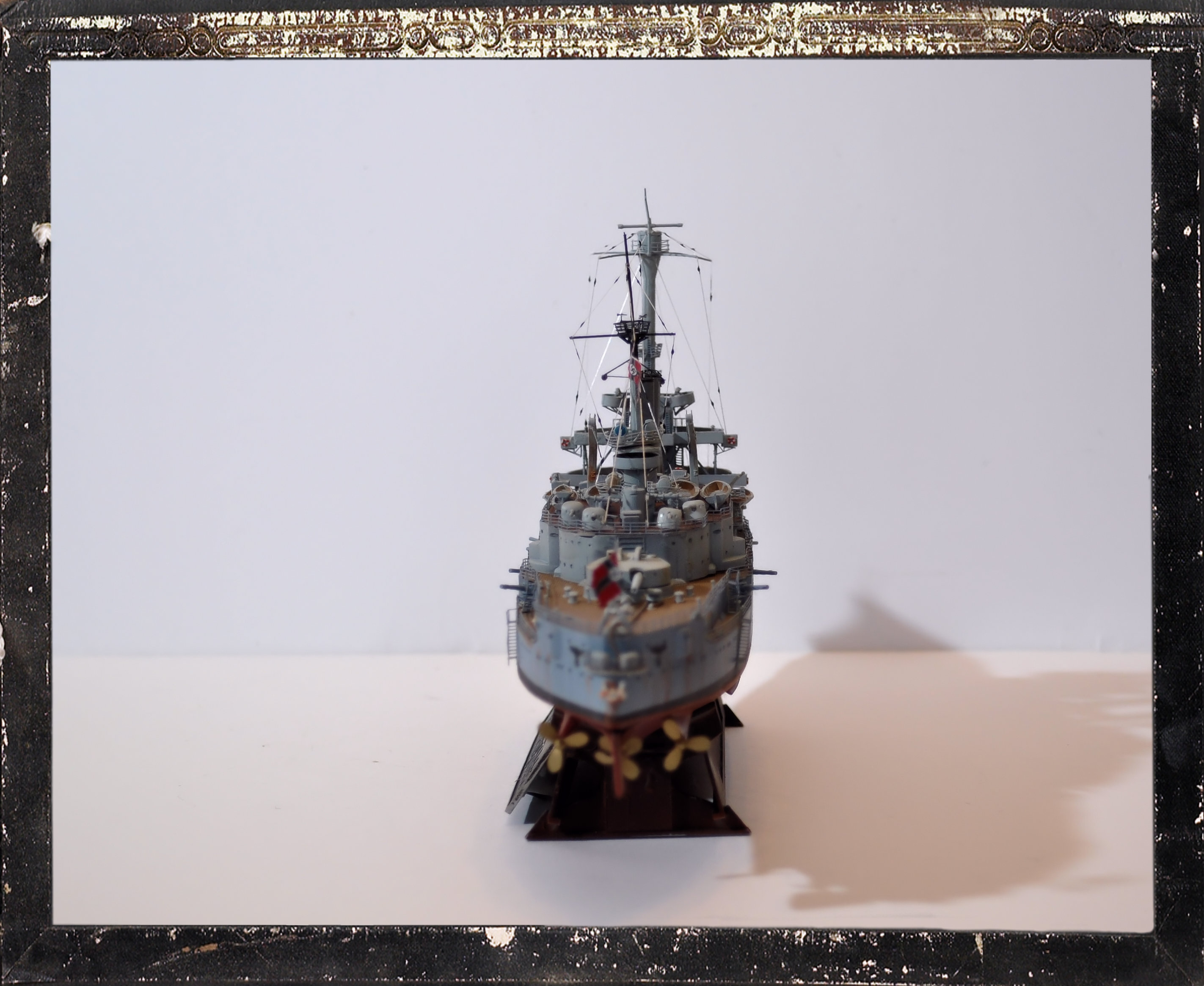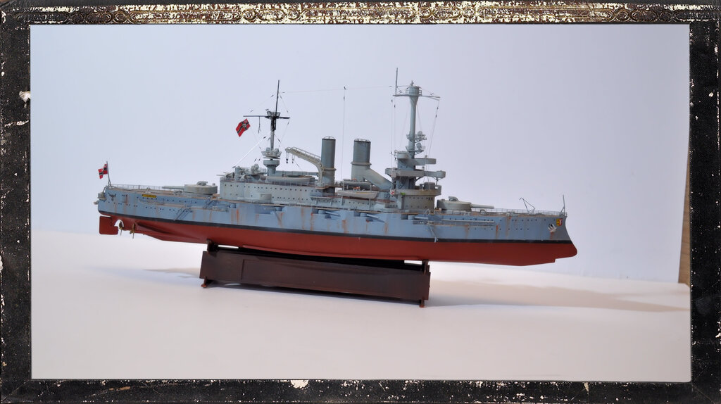 Kolejny okręcik opuścił "stocznie" KWM -RH tym razem to brytyjski monitor z I wś HMS Lord Clive model Hobby Boss 1:350 .Malo znany wiec trochę historii z Wikipedii HMS Lord Clive – brytyjski monitor z okresu I wojny światowej, jedna z ośmiu jednostek typu Lord Clive. Okręt miał wyporność 5683 ton i osiągał prędkość 7 węzłów, a jego główne uzbrojenie stanowiły początkowo dwa działa o kalibrze 305 mm, uzupełniane przez artylerię mniejszego kalibru. Zwodowany 10 czerwca 1915 roku w stoczni Harland and Wolff w Belfaście, został wcielony do służby w Royal Navy 10 lipca 1915 roku. Monitor otrzymał nazwę na cześć XVIII-wiecznego brytyjskiego generała i gubernatora Roberta Clive. Wchodzący w skład Sił Dover[w innych językach] (ang. Dover Patrol) okręt wziął czynny udział w działaniach wojennych na Morzu Północnym, uczestnicząc m.in. w rajdzie na Zeebrugge i Ostendę. W 1918 roku jego uzbrojenie zostało powiększone o działo kalibru 457 mm, pochodzące z wielkiego krążownika HMS „Furious”. HMS „Lord Clive” został wycofany ze służby ostatecznie w sierpniu 1921 roku, a w 1927 roku został sprzedany i następnie złomowany.