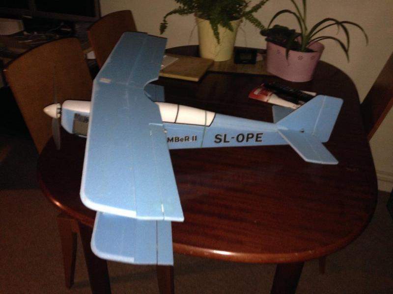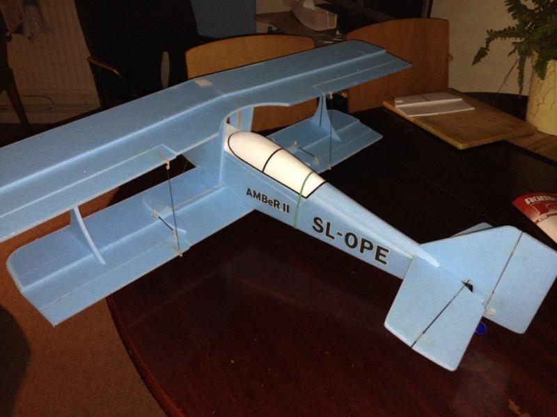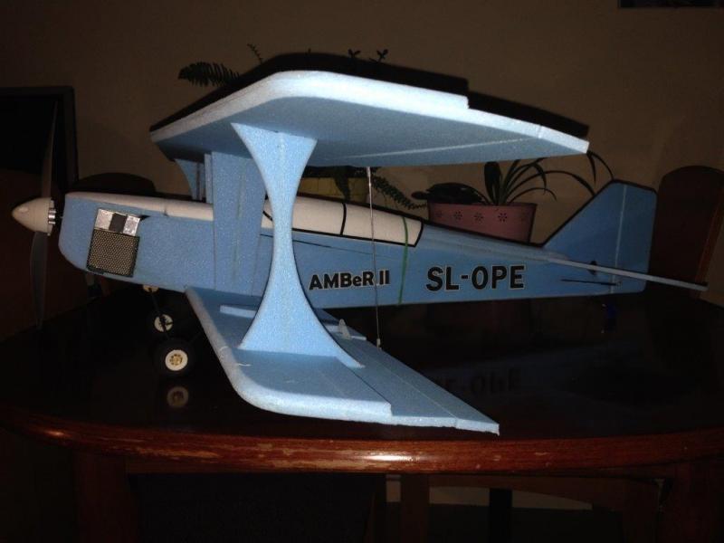 Jakoś nie miałem czasu na sesję zdjęciową więc na szybko pstryknąłem kilka zdjęć i przyznam się bez bicia, nie będę udoskonalał chyba że jakieś napisy czy inne "O" zdupki zarzucę. Chociaż powiem wam, lata bardzo dobrze, stabilnie, bez napędu płynie spokojnie bez zbytniego przechylania na nos. Będę natomiast z pewnością próbował innych smigieł. W tej chwili mam SF 9x6, sprawdzę jeszcze na 9x4.7 i na 9x7,5. Napis przeniosłem z poprzednika dlatego wciąż widnieje AMBeR II ale w weekend zrobię nowe naklejki takie jak być powinny czyli AMBeR III XP Ni mniej ni więcej wygląda tak: .... a może go pomaluję Profilaktycznie kadłub okleiłem przezroczystą taśmą celem wzmocnienia konstrukcji która i tak wyszła zdumiewająco sztywna. Mogę go złapać tuż przy sterze kierunku za kadłub i spokojnie trzymać poziomo. Ani drgnie Obecnie pracuję nad planami Kto wie, może kiedyś będę miał ochotę ponownie go zbudować i polatać -