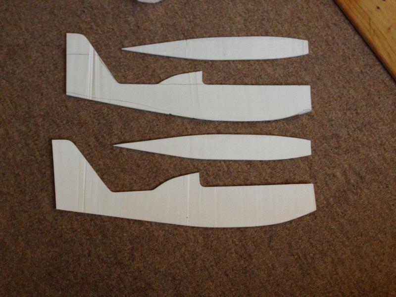 Witajcie, Ponieważ moja latorośl domagała się aby jej zaprojektować i zbudować coś do nauki latania, usiadłem i wymodziłem ... mały górnopłat. Długość szacowana 550mm, rozpiętość podobnie, około 600mm, wysokość wraz z podwoziem około 220mm. Profil KFm2 (najprawdopodobniej) płat prosty z podporami ... bez udziwnień. Wstępny zarys kształtu: Niewielkich rozmiarów o zwięzłej budowie i sporej powierzchni nośnej. Lekki bo mam nadzieję, że waga nie przekroczy 250/300g wraz z osprzętem. Zakładam, że będzie latał .... i do tego powoli Oczywiście w warunkach bezwietrznych Myślę jaki motorek do tego założyć, zasugerujcie coś do takiej wagi i możliwie najmniejsze gabarytowo, jakiś Outrunner o niedużym KV bateria 2S 350mAh no może maksymalnie 500mAh bo nie sądzę żeby potrzeba było więcej a ma być lekko Śmigiełko 5"-6" a może i mniejsze 2 serwa mikro .... Taki jest plan ... około godzinę później ... Powoli wyłonił się kadłub. Wykonany z twardego styropianu 2mm, wzmocniony cienkimi 1.5mm prętami węglowymi wewnątrz, plus klatka z balsy w której zamocuję serwo steru wysokości a na przedłużeniu w przód zamontowany będzie silnik. Drugie serwo znajdzie miejsce na płacie i będzie napędzało bowdenami lotki. Czyli wysokość, lotki i ciąg to wszystko co będzie posiadał AMBeR Mini. Klatka będzie powiększona także w tył aby usztywnić i zabezpieczyć kadłub przed złamaniem w przypadku twardego lądowania. Podwozie z cienkiego drutu stalowego osadzone będzie wewnątrz klatki ale zostawiam to na koniec. Zobaczymy jak się wszystko wagowo poukłada i gdzie mi SC wyjdzie. wtedy zdecyduję jak i w którym miejscu osadzić podwozie C.D.N.