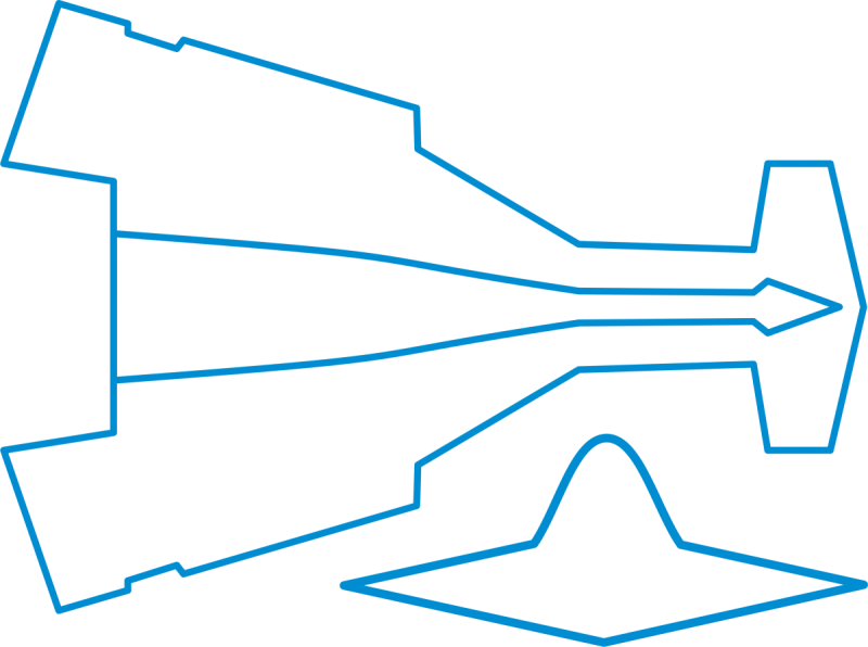 Hej wszytkim, Z pewnością wielu z Was czytało komiks i Funky Kovalu ... czy nie ? Ja w każdym razie do dzisiaj jestem jego fanem. Od pewnego czasu nosiło mnie, żeby zbudować coś nowego, innego może nawet dziwnego. Przeglądając w/w komiks wpadł mi w oko jeden z pojazdów i postanowiłem taki właśnie zbudować. Zastanawiając się nad sposobem sterowania przyszło mi do głowy coś takiego przynajmniej w kwestii kierunku lotu, zamiast standardowego steru kierunku ruchomy balast. Czy ktokolwieik kiedykolwiek coś takiego próbował robić ? W kwestii steru wysokości ruchoma dysza. O ile się wogóle sprawdzi moja koncepcja. Zasadniczo chodzi o to, żeby kadłub nie posiadał żadnych wystających/ruchomych elementów oprócz stabilizatora (pionowego skrzydełka na górze kadłuba). Nie wykluczone też, że będzie napędzany EDF'em, chociaż na chwilę obecną w planie jest napęd pchający. Widziałem kilka przedziwaków na YT ale one ... nie latały a przynajmniej nie tak jak się spodziewał twórca Ogólnie, tak mniej więcej ma to wyglądać w rzucie z góry i z przodu Jak sądzicie ? Oczywiście to tylko zarys tego jak będzie wyglądał mój nowy aircraft -