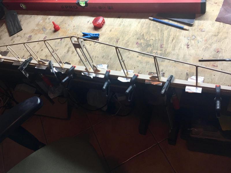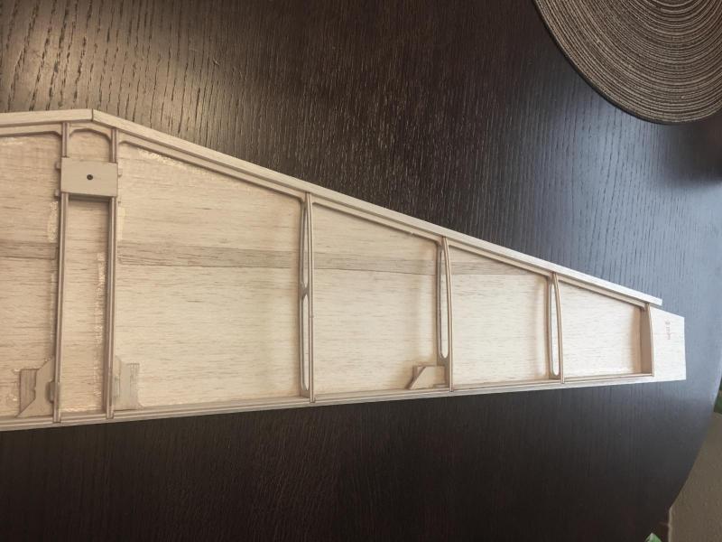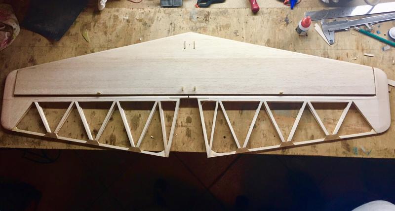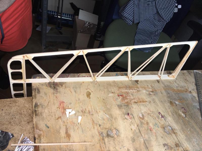 Święto, świętem jednak....praca się sama nie zrobi Na dzisiejszy wieczór poszedł ster wysokości. Standardowo w pierwszej kolejności wycięte puzle ze sklejki klejone na CA i następnie nakładki balsowe na żeberka, grubsza balsa na końcówki i dzisiaj wieczorem szlifowanie.