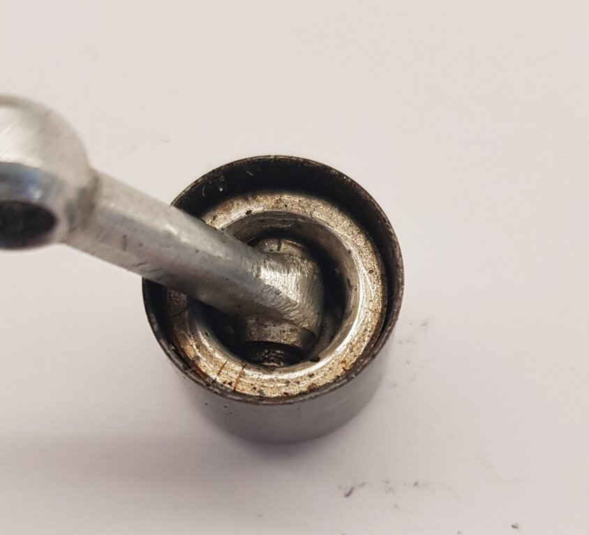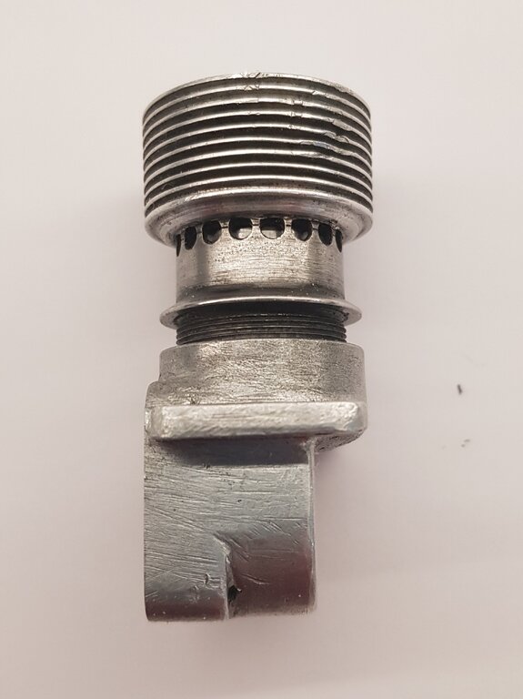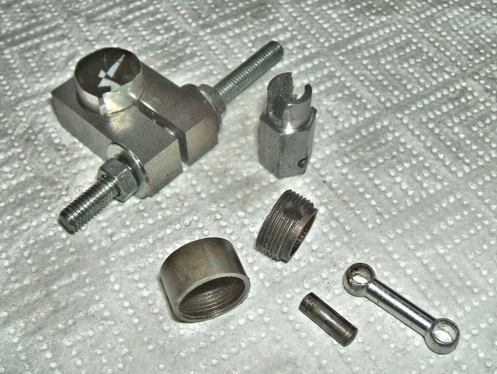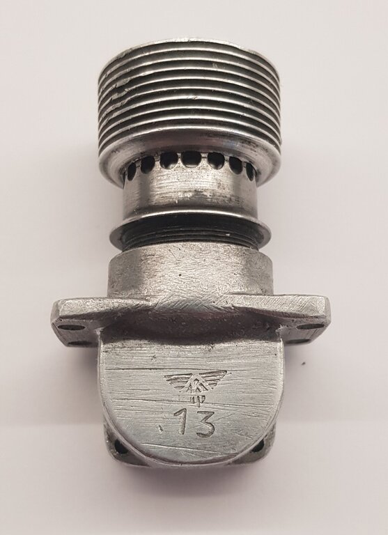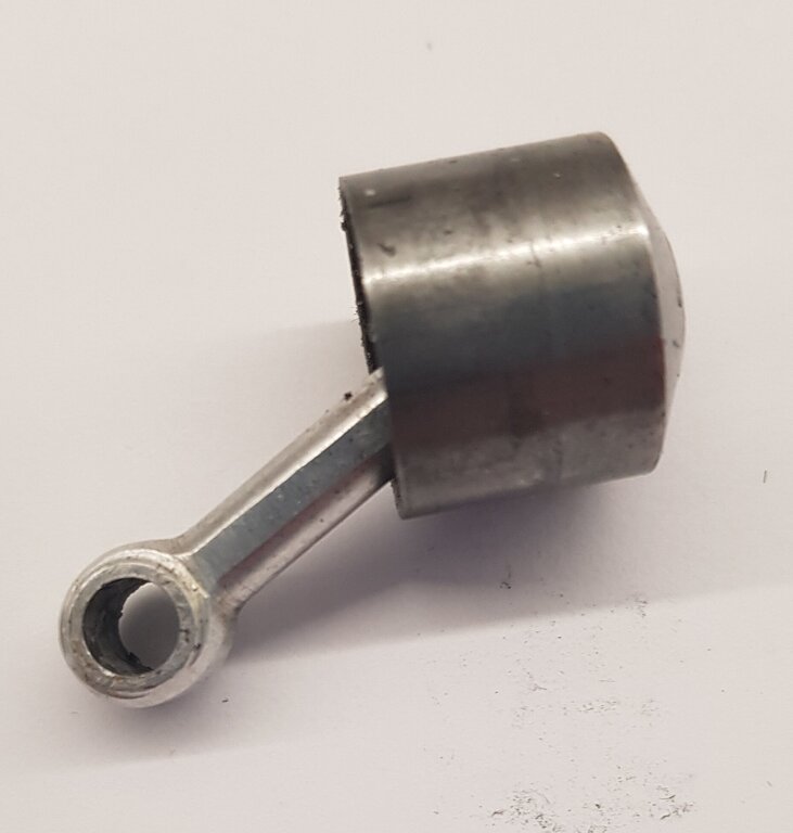 Przywracam do życia kolejny polski silniczek, wykonany przez Władysława Kulika na początku lat pięćdziesiątych. Po demontażu zobaczyłem nietypowo połączony korbowód z tłokiem. Tłok wykonany ze stali , grubość ścianki to tylko 0,6 mm , i średnica 16,1 mm. Skok coś około 12 mm , co daje poj. około 2,5 cm3 Wewnątrz tłoka jest wkładka z aluminium i do niej, przy pomocy sworznia zamocowany korbowód . Ta wkładka jest zanitowana z tłokiem , co widać na denku tłoka.Jednocześnie obraca się wewnątrz tłoka. Sposób mocowania był stosowany w silnikach węgierskich Proton i angielskich Allen-Mercury 35, z tą jednak różnicą, ze ich wkładki były wkręcane do wnętrza tłoka. foto. Obracająca się wkładka wewnątrz tłoka umożliwia montaż wkręcanego cylindra w karter, tak jak na foto. Główka dolna korbowodu opiera się o denko skrzyni korbowej, i wkręcając cylinder wraz z nieruchomym tłokiem , korbowód nie obraca się . Umożliwia to obracająca się wkładka .