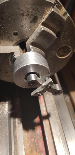 Nowego korbowodu już nie można zakupić, więc pozostało wykonać własnoręcznie. Wymiary zdjąłem z drugiego takiego motorka, narysowałem i wrzuciłem na obrabiarke. Materiał PA 9 grubosci 8 mm. 10 minut i zarys korbowodu zrobiony. Teraz pozostało roztoczyć otwory , wstawić tulejkę z brązu i rozwiercić pod sworzeń i czop korbowy.