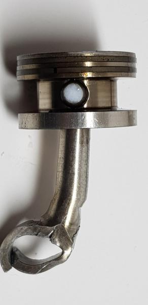 tłok i cylinder bez zastrzeżeń. Natomiast wygląd tulejki brązowej może świadczyć, ze obróciła się w stopie korbowodu. Na zewnątrz tulejki jest cieniutka warstwa aluminium.