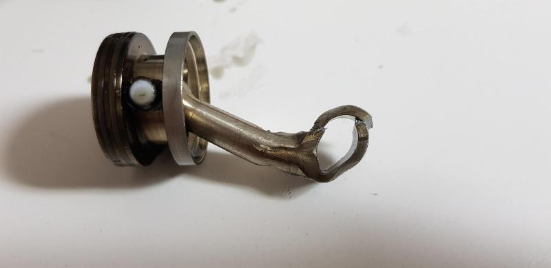 To pewno sworzeń tłokowy zapiekł sie w korbowodzie. Należy podgrzac korbowód i rozruszac go wzgledem sworznia. Musi sie luzno przesuwać na sworzniu.