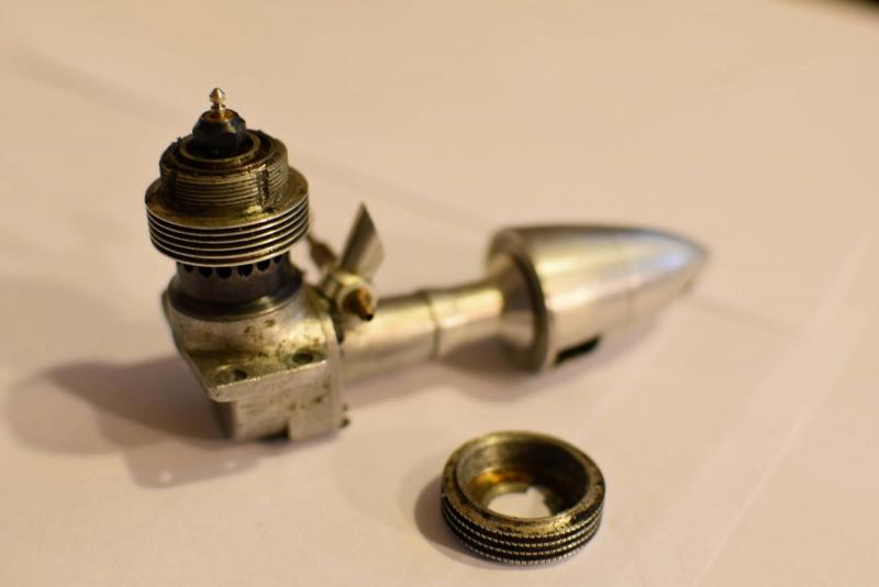 To cudo to HB 61 Stamo, silnik do Helików. Tylko ktoś obciął mu z tyłu ośkę do napędu wirnika chłodzącego. A na zaklejony silnik to sposób jest taki , że należy wyjąć plastikowy gażnik , a korpus podgrzać opalarką do temperatury pracy, troszke rozpuszczalniku nitro do środka i powinno puścić. Następnie rozbiórka na czynniki pierwsze, i dokładne czyszczenie, zwłaszcza pierścienia tłokowego.Musi być luzny w tłoku.