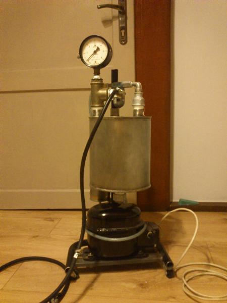 Mam nadzieję Przemku, że nie obrazisz się jak zamieszczę tu zdjęcie mojego kompresorka. Jest pionowy, dużo miejsca można w ten sposób zaoszczędzić.