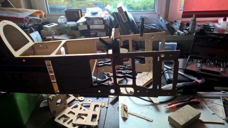 I znowuż silnik... Tym razem może ja trochę zawiniłem, ale wydawało mi się, że wszystko jest ok. Uruchomiłem model na ziemi, wyregulowałem silnik, sprawdziłem maksymalny ciąg i wio na pas! Dodałem gazu, a tu nagle zupełny spadek mocy. Model trochę w powietrzu, a trochę nie. Prędkość za mała, aby dał się skutecznie kierować - leciał takim jakimś "harierem". Teraz po czasie myślę sobie, że trzeba było nie tylko lotkami, ale i sterem kierunku ciągnąć go od zarośli. Z drugiej strony pomyślałem sobie, że jeśli trafi w nasze przylotniskowe drzewa, to nie będzie tragedii. Wydaje mi się, że nikt nie przycina ich gałęzi, więc tworzą bezpieczny amortyzator. Ale miałem dużo szczęścia - model trafił w jedyną wolną przestrzeń pomiędzy gałęziami, przyrżnął kołpakiem w pień wbijając silnik do środka. Pozbierałem drzazgi i tym razem "na tarczy" wróciłem ze szczątkami modelu na warsztat szukać przyczyny. Okazało się, że w locie... odkręciła się świeca zapłonowa. Pewnie z tej przyczyny silnik ledwie ciągnął. Wydawało mi się, że dobrze ją dokręciłem, ale chyba tak nie było. Być może klucz gdzieś się oparł, być może zadziałał "opór psychiczny" - marny gwint, który łatwo zerwać. Już raz wymieniałem głowicę. Na szczęście nie jest bardzo droga. Odbudowanie modelu zajęło tydzień. Połamane boki podkleiłem i wyfrezowałem. Połamane wręgi narysowałem i wyciąłem. W poście kilka fotek z odbudowy - normalna rzecz, nie chcę przynudzać ani się chwalić. Zwykła budowa modelu. Całość połatana czeka na oblot. Niestety, mój nieszczęsny Evolution dostał jeszcze jedną szansę. Wydaje mi się, że odkryłem już wszystkie jego wady. Może doświadczenie nie pozwoli dać się zaskoczyć kolejnym "numerem" wykręcanym przez ten silnik?