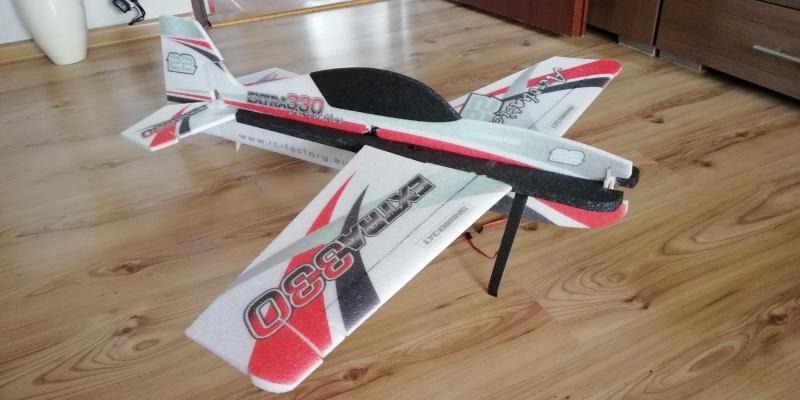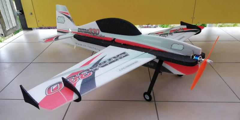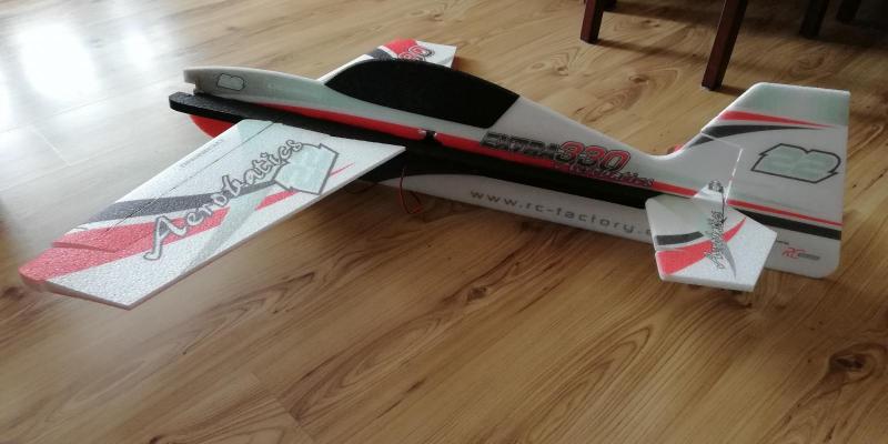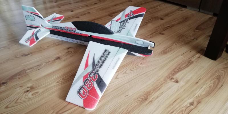 Model firmy RC Factory, Extra 330. Jest to model akrobata o rozpiętości skrzydeł 1000mm,z pianki epp.