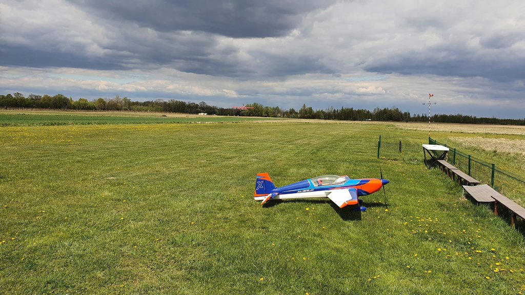 Dzisiaj pogoda dopisała i w końcu Grzesiek mógł oblatać swoją nową Extrę 330LX z Pilota Rc z silnikiem GP 123.