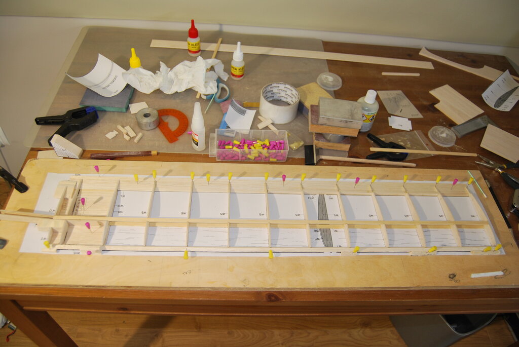 Jarku nie chciał bym Ci psuć nastroju ale to jest jeszcze etap, w którym możesz. Martwi mnie to, że wszystko robisz "w powietrzu". Kadłub jest składany bez utrzymania żadnej osi. Jeśli na wręgach nie masz wypustek i znaczników pozwalających użyć do tego PROSTEGO stołu to musisz sobie ogarnąć jakiś stelaż pomocniczy wyznaczający osie. Szkoda pracy inaczej bo wyjdzie ładny modela latał będzie tak sobie. Pozdrawiam