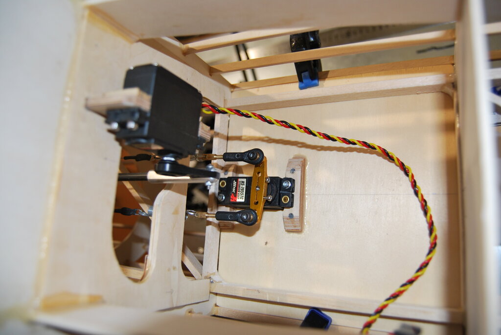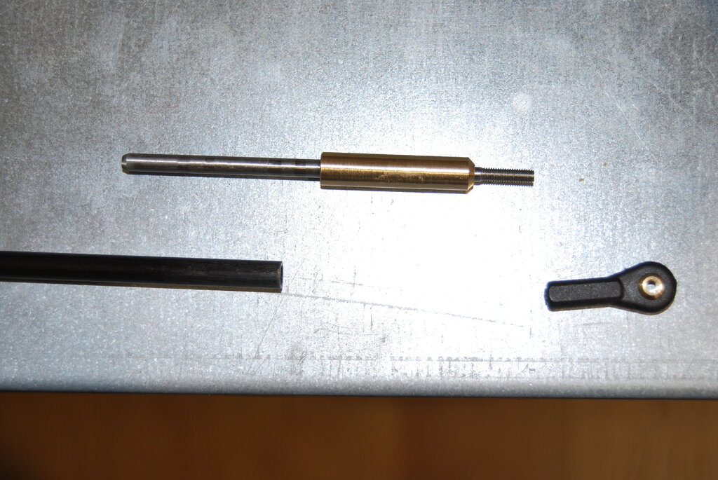 Małe postępy. W przerwach pomiędzy setkami pytań jakimi zasypuje mnie syn podczas wspólnej zabawy w modelarni staram się też coś zrobić przy swoim modelu. Oto postępy z ostatnich 3 tygodni: Odcięta, przedłużona i pokryta została chłodnica oleju. Brakuje jeszcze małego fragmentu pokrycia stanowiącego przejście chłodnicy w skrzydło do którego będzie przytwierdzona ale to wymaga zbudowania skrzydła ?. Powstanie jeszcze wypukła "obramówka" wlotu, żeby całość wyglądała bardziej makietowo. Powstają napędy sterów i koła ogonowego w kadłubie tak, żebym wkrótce mógł zacząć jego pokrywanie balsą. Koło się już chowa i skręca a testy z użyciem radia przebiegły pomyślnie. Linki otrzymały sprężyny naciągowe co powoduje, że linki są cały czas napięte w każdej pozycji. Koło może pracować swobodnie w każdej fazie chowania tak aby nic nie zablokowało steru kierunku. Popychacze do sterów i chowania koła będą z rurek węglowych o grubszych ściankach. Okucia wykonuję sam na tokarce i mam taki patent, który umożliwia pewne wklejenie ich w rurkę, tzn wykonuję dwuczęściowe okucie, którego zewnętrzna część nachodzi na rurkę na długości ok 2,5 cm (oczywiście na kleju) a wewnętrzny pręt jest nagwintowany i łączy się tym gwintem z zewnętrzną obsadką a jednocześnie jest też wklejony do wnętrza rurki na żywicy na długości ok 6 cm. Tak to wygląda na przykładach przed wklejeniem i po dla 2 różnych napędów -