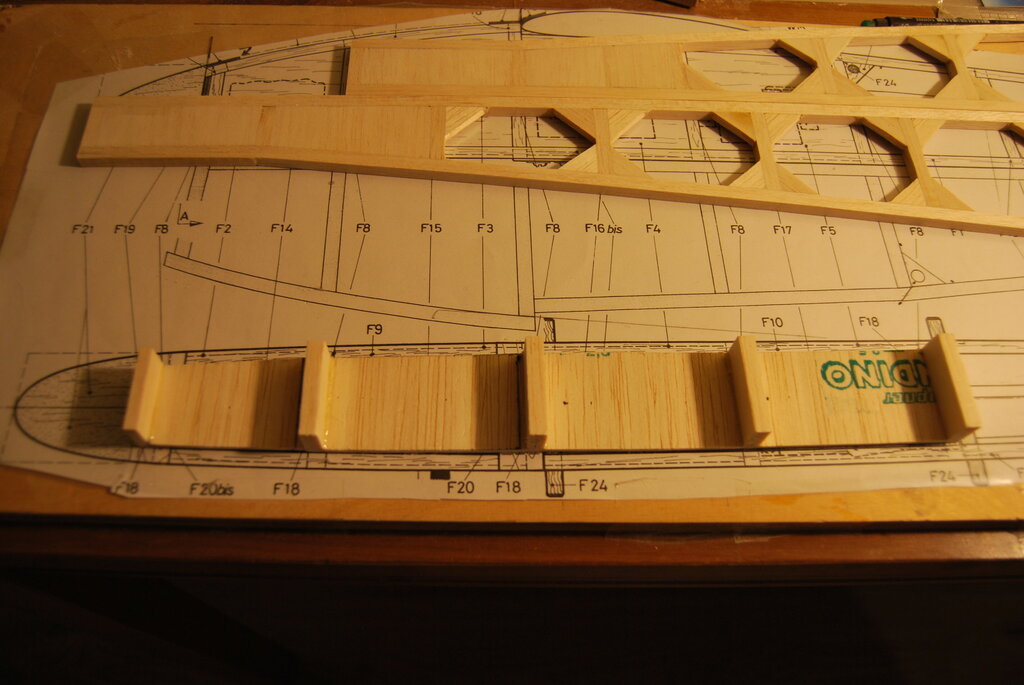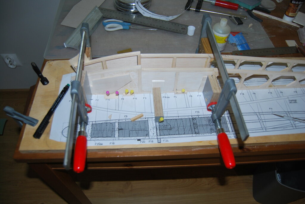 Trochę nas tu nie było ale koniec roku mam dość intensywny zawodowo. Boczki kadłuba gotowe Powstała też spodnia przednia część kadłuba i całość została sklejona z boczkami: Teraz Szymek przygotowuje rozpórki i pozostałe elementy aby zakończyć prace przy kadłubie. Za około tydzień pokażemy kolejne postępy. -