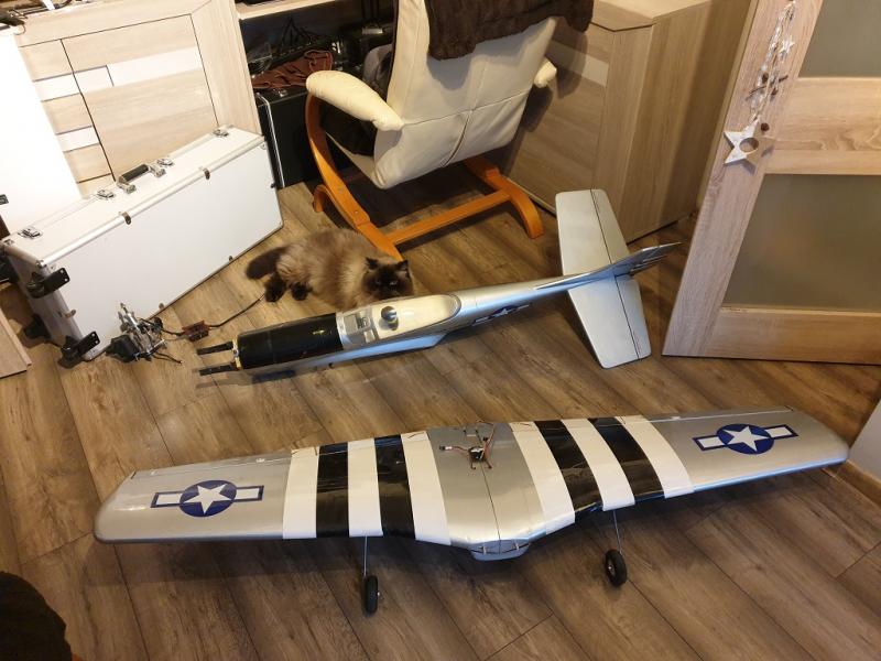 Witajcie, czy ktoś rozpoznaje maszynę ze zdjęć? Zakupiłem od sąsiadów z południa, niestety nie wiem kto jest producentem. Kadłub z laminatu, skrzydła to styro kryte balsą + folia. Rozpiętość 1700mm długość 1400mm. Pytałem wujka google na wszystkie możliwe sposoby jednak bez powodzenia (znalazłem podobnego, tyle, że o rozpiętości 1400mm)