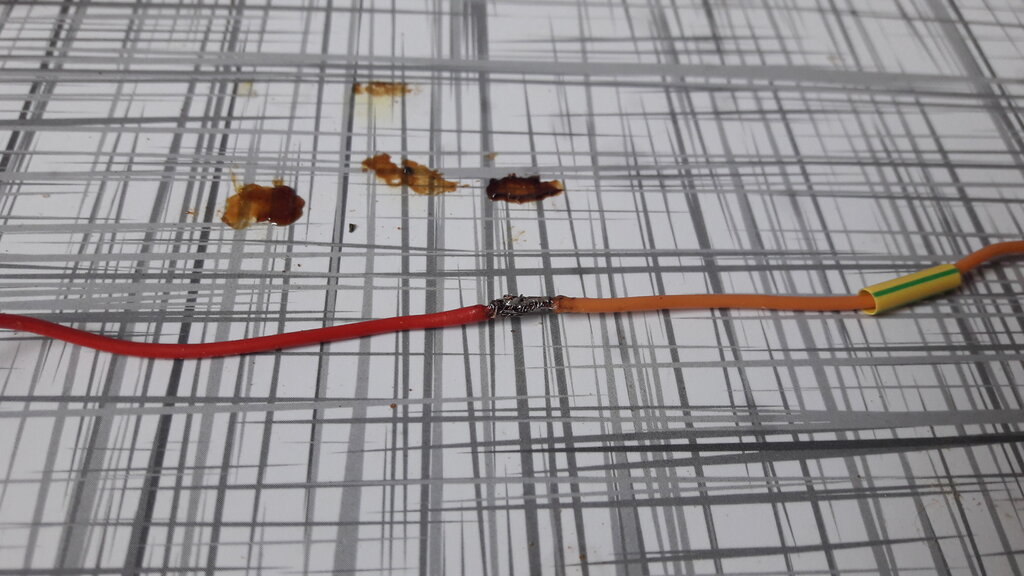 16. Nie wiem czy to odktycie ameryki, ale opiszę jak lutuję kabelki. Zdejmuję izolację jakieś 3-4mm na obydwu kabelkach. Zakładam na jeden z kabelków koszulkę termokurczliwą 7-8mm Z odizolowanych końcówek robię rozciapiżony pędzel Zamaczam go w roztopionej kalafoni i enegicznie otrząsam Nasuwam na siebie czołowo rozciapiżone pędzle Roluję między palcami aby dostać grubość skrętki/przewodu Nanoszę na zrolowane kabelki cynę trochę dłużej je podgrzewając Nasuwam na zlutowaną część koszulkę termokurczliwą Podgrzewam ją zapalniczką Gotowe Fotki poglądowe, zrobione tak na szybko, na już dla tych co są wzrokwcami