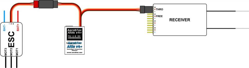 http://www.aerobtec.com/download/AltisV4manual_en.pdf strona 6 For competition use (like F5J FAI, ALES, etc.) the JR input cable has to be connected to the R/C receiver, and the JR ESC cable has to be connected to the output connector on the main measuring unit board. See Fig 3. I wszystko stało się proste. Namieszał mi trochę odręczny rysunek Tomka Regulator z BEC podłączam trzema żyłami (brązowa, czerwona, zółta) pod Altis'a a Altis'a pod kanał 3 (tam gdzie był regulator) i zasilanie serw zostaje na kanale 5. Dzięki za cierpliwość i wyjaśnienia.
