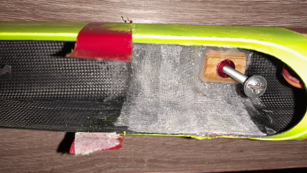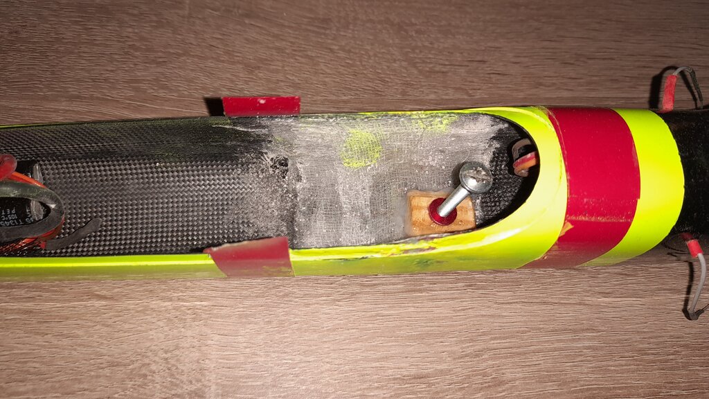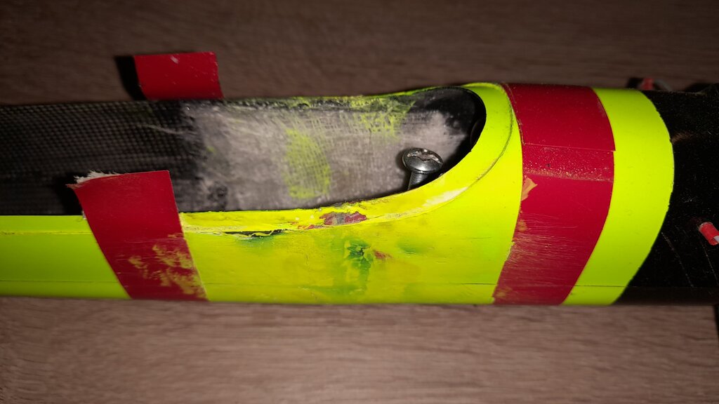 Gratulacje dla... WSZYSTKICH. Sorry ale o Tomku F. i Wojtku B. się nie rozpisuję, bo to klasa sama w sobie, co nie znaczy że Wam nie gratuluję, ale Damian Damianie chapeau bas i to bez kszty ironi. Mam przed oczami obraz jak latałeś w Jaworze i byłem pod ogromnym wrażeniem Twoich umiejętności, a widząc ten wynik poprostu mnie zamurowało. Fajnie, że młodość zmierza ku F5J i życzę Ci na każdych kolejnych zawodach jeszcze lepszych wyników. Tomek M. i Jarek G., uważam że gdyby w sobotę była ciut inna aura, to też by pomieszali w punktacji, co widać w rundach finałowych, a i Ty Konradzie zrobiłeś duuuże postępy, co cieszy równie szczerze. Z tabeli widzę, że jeden z uczestników bardzo konsekwentnie starał się mieć przez wszystkie loty dokładnie tą samą ilość punktów Dzisiaj już trochę mi przeszło, ale... Jak pech, to pech, a raczej moja głupota. Czwartkowe popołudniowe loty zakończyłem cyrklem i kretem. No niby prędkość niewielka, bo z wypuszczonymi klapami, niepozorna wysokość niespełna 1m, a kadłub tak trochę się wygiał. Po dwóch dniach roboty wygląda tak jak na foto. Zostało jeszcze od zewnątrz wygładzenie na mokro papierem 2000 i położenie lakieru i poprawienie estetyki od środka. Jeszcze raz wszystkim szczerze gratuluję i do zobaczenie za miesiąc. P.S. Konrad - special thanks to you za zorganizowanie imprezy.