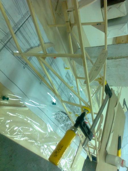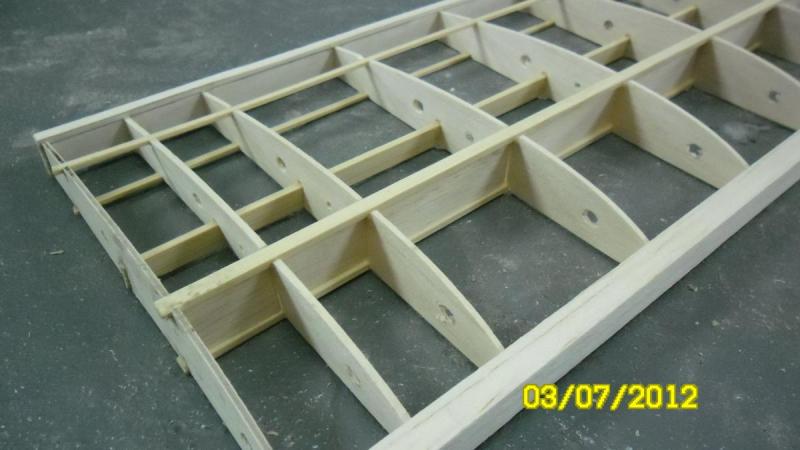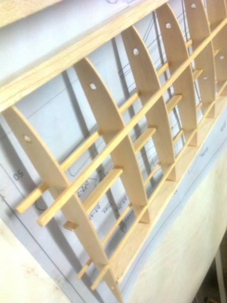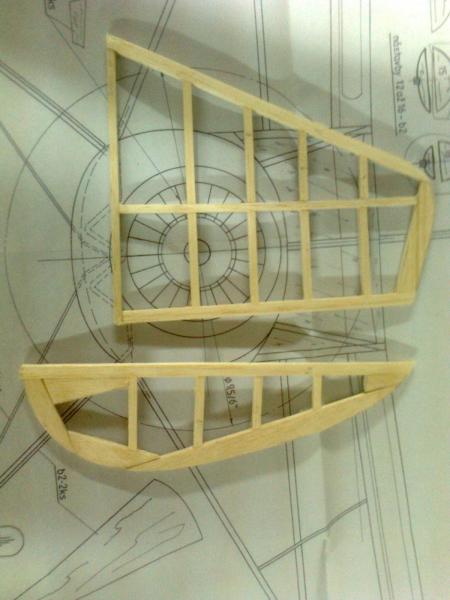 Wklejam postępy moich dzisiejszych i piątkowych prac. W piątek skleiłem skrzydła, dzisiaj statecznik pionowy i ster kierunku, zaczynam tez kleić kadłub z wręg które przygotowałem sobie w zeszłym tygodniu,no i tutaj jest bardzo dużo problemów plany są kiepsko porzygotowane część wręg nie pasuje musiałem poprawiać już wycięte wręgi lub budować je od początku. Plany z których korzystam to dokładnie te http://eshop.rcrevue.cz/index.php?page=shop.product_details&flypage=flypage.tpl&product_id=1424&category_id=9&option=com_virtuemart&Itemid=1