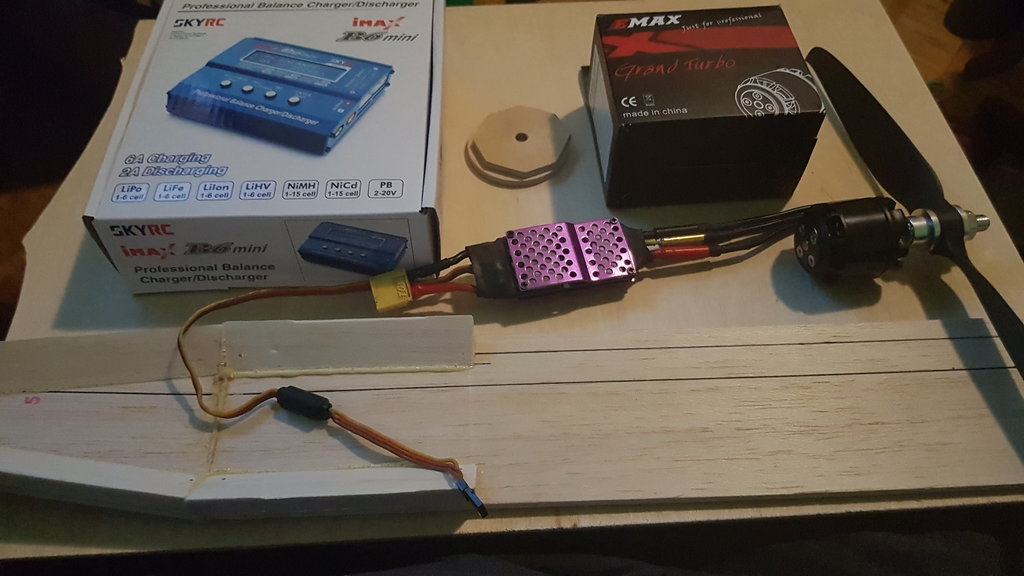 Witam serdecznie po bardzo długiej przerwie! Temat nie umarł! Po prostu z racji sporych różnych okoliczności zaczął się bardzo rozwlekać w czasie. ? Tak więc po sklejeniu ogona na stałe już, oklejeniu mu lotek itp, uznaję go za praktycznie ukończony (dopieszczanie i wyoblanie tej balsowej wstawki przy łączeniu z węglem, zostawiam na absolutny koniec). Leży od końcówki listopada czeka na resztę: Przez grudzień był miły przypływ gotówki więc zrobiłem kilka zakupów: - silnik EMAX GT 2815/07 - Ładowarka oryginał SkyRC IMAX B6 MINI (tamta podróbka była pożyczona ?) - zapas balsy na kadłub. Z tym ostatnim zeszło najdłużej, bo robiłem zamówienie razem z ludźmi z koła naukowego i paczka zanim się zebrała, przyszła, wszystko stało i czekało przez przerwę świąteczną. Jednak do rzeczy. Zacząłem wreszcie dłubać kadłub. Na chwilę obecną robię kanciaka o przekroju kwadratowym- przy silniku 5x5cm, potem 7.5x7.5cm, ale na grubych listwach trójkątnych 1.5x1.5cm, które zamierzam zeszlifować nadając kadłubowi wyoblenia. Do tego również, zamierzam zrobić -zapewne wielu może się to wydać dziwne i głupie- system montażu asekuracyjnego silnika. Już spieszę z wyjaśnieniem: silnik będzie zamontowany na blaszce aluminiowej zamiast oryginalnego krzyżaka, przez którą na wylot będą przechodziły śruby. Śruby te będą jednocześnie prowadnicą dla tej blaszki silnikowej oraz zamocowaniem sprężyn dociskających silnik do wręgi w momencie normalnej pracy. Gdy samolot pogoni kreta, w momencie uderzenia o ziemię, silnik się cofnie głębiej w kadłub na tych sprężynach, minimalizując uszkodzenia silnika, osi, może i kabli. Znając życie, przekonam się na pewno, co to warte. ? Tak więc powolutku, pomalutku, coś rzeźbię. Stay tuned! ?
