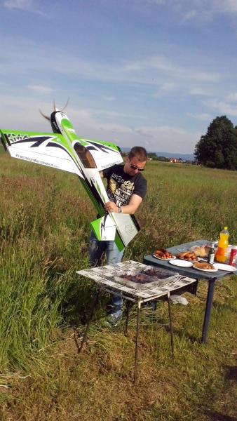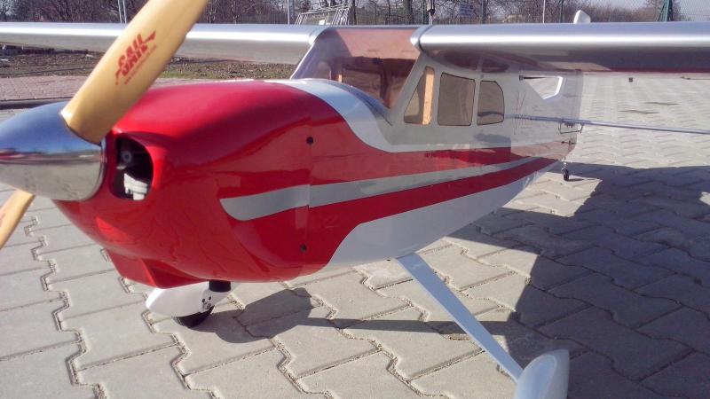 Dzięki za porady , model oszklony i klapki wyprostowane Pogoda ostatnio dopisuje i o mało co nie padła decyzja o oblocie w dniu dzisiejszym. No cóż, skończyło się tylko na paleniu silnika, kołowaniu i spacerku za modelem . Jak narazie wszystko wygląda bardzo dobrze. Waga modelu bez paliwa wyszła 7,45 kg . Kilka fotek: