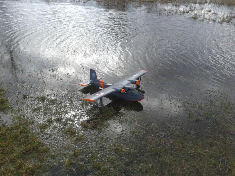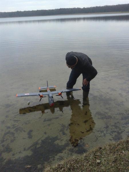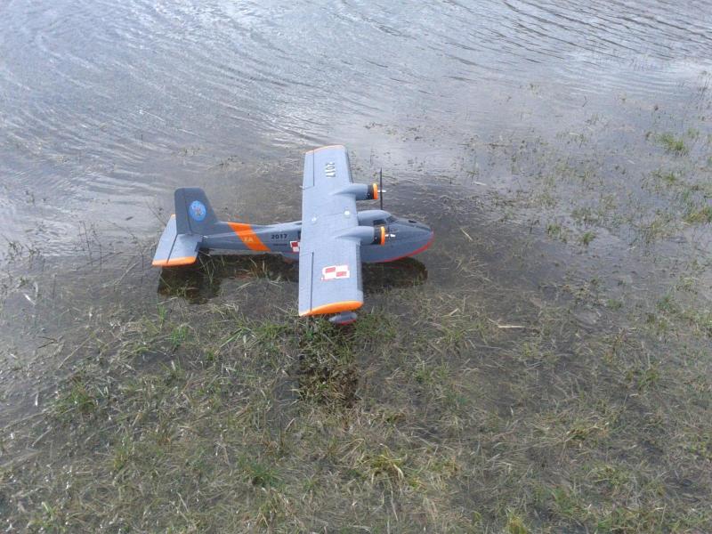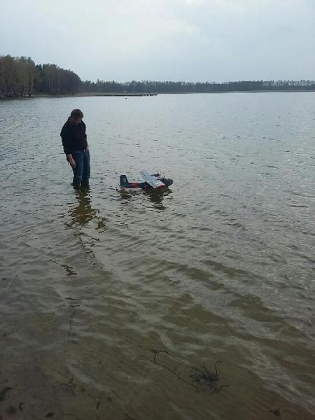 Zwiekszylem drastycznie plywaki podskrzydlowe (2x) na smiglach 10 wszystko mocno chlapie, model nigdy wczesniej nie latal wiec zdecydowalem sie na loty z reki na sucho Oblot na smiglach 10, model zostal wytrymowany , dopiero zmiana smigiel na 8 dala mu lepsze loty Dzis proby startu z wody -