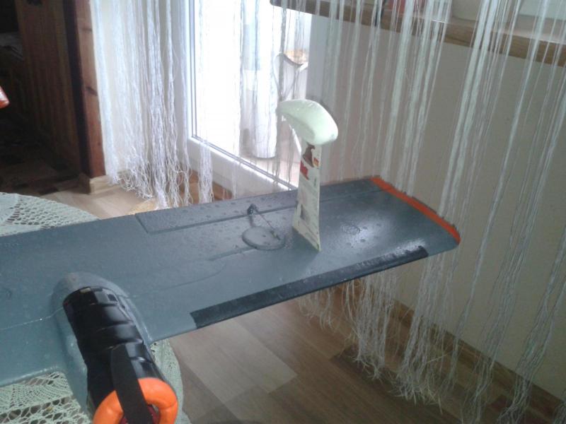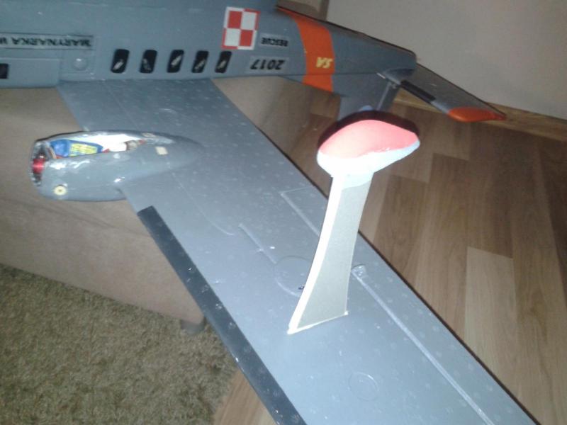 Zmienilem plywaki na wieksze Smigla oczywiscie sa przeciwbiezne Musze chyba najpierw poleciec tym modelem na sucho wyregulowac go Skrzydla zostaly dowazone, w bagnecie znalazl sie olow -