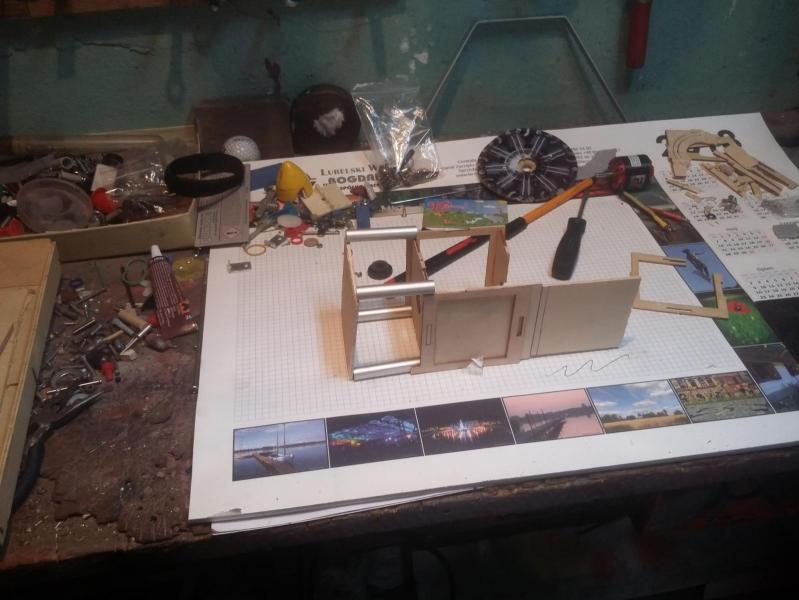 podczas prób stacjonarnych domek ukrecilo. Chyba wychodzę z wprawy ze tak się stało. Na następnym zdjęciu koncepcja nowego domku.teraz już go nie ukreci.