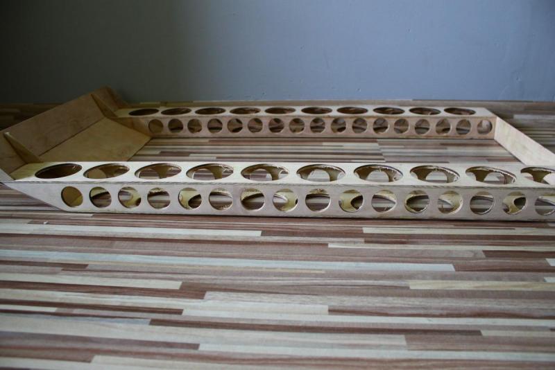 Witam Od pewnego czasu buduję Airboat. Teraz robię 6 kadłub do niego(inne nie spełniły moich oczekiwań) i planuję go zrobić z laminatu włókna szklanego, więc kupiłem już żywicę epoksydową Epidian 52 + Z-1 i tanią tkaninę rowlingową. Mój pierwszy plan był taki, aby połączyć dwie boje (które zrobiłem do poprzedniego kadłuba) i je zalaminować bez góry(górę chciałem pokryć materiałem wodoodpornym lub laminatem z dwóch warstw). Byłoby idealnie, lecz po moich obliczeń waga takiego kadłuba wynosiłaby około 1300g. Według mnie jest to za dużo (Silnik ASP 6.5ccm daje mi ciąg około 2kg). Sama konstrukcja waży 620g, a laminat z moich obliczeń wynosiłby drugie tyle. Z tego względu wymyśliłem drugi plan, który polega na tym samym, ale owinąć te dwie boje ostrożnie folią (aby laminat nie przyległ do konstrukcji)tak aby nie było żadnych fałd i w ten sposób zalaminować. Później wyciągnąć konstrukcję i usztywnić kadłub (szczególnie tam gdzie ma być silnik) Wczoraj zrobiłem dwa laminaty. Jeden większy(aby zobaczyć jak laminat zachowuje się przy większych powierzchniach), który składa się z 4 warstw, które są położone pod kątem 0 stopni, drugi mniejszy, ale jego warstwy są położone pod kątem 0,45,0,45 stopni (chciałem zobaczyć czy rzeczywiście taki laminat jest wytrzymalszy). Oby dwa laminaty docisnąłem deski obłożone folią(po czym stwierdzam że był to błąd bo są widoczne fałdy na nich-nie udało mi się idealnie naciągnąć folii), a na nie położyłem najcięższe rzeczy jakie miałem w piwnicy. Później wyliczyłem gęstość takiego laminatu i wyszła mi 0,1174 g/cm kwadratowy i tą gęstością posłużyłem się do obliczenia wagi kadłuba. Pytania: -Jak pozbyć się pęcherzyków powietrza w laminacie ? -Czy owinięcie folią będzie powodowało jakoś na wytrzymałość laminatu ? -Jak zwiększyć wytrzymałość laminatu na zginanie ? -Czy dobrze postępuję ? Prosiłbym o porady, uwagi za które z góry bardzo dziękuję -