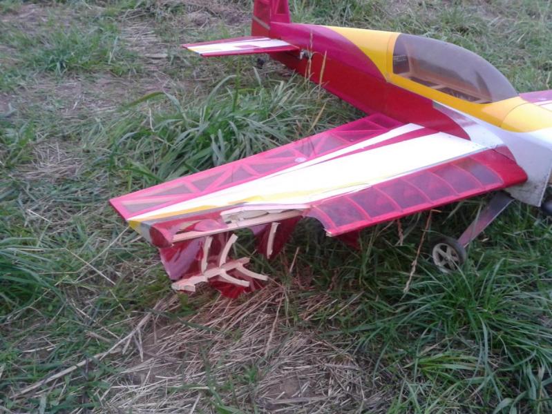 Dzisiaj trenerek kolegi i moja Extra miały spotkanie z glebą - ziemia jakoś mocniej przyciągała Extra już prawie naprawiona pozostało tylko oklejenie kawałka skrzydła folią. Trenerek miał mniej szczęścia - kadłub do wymiany.
