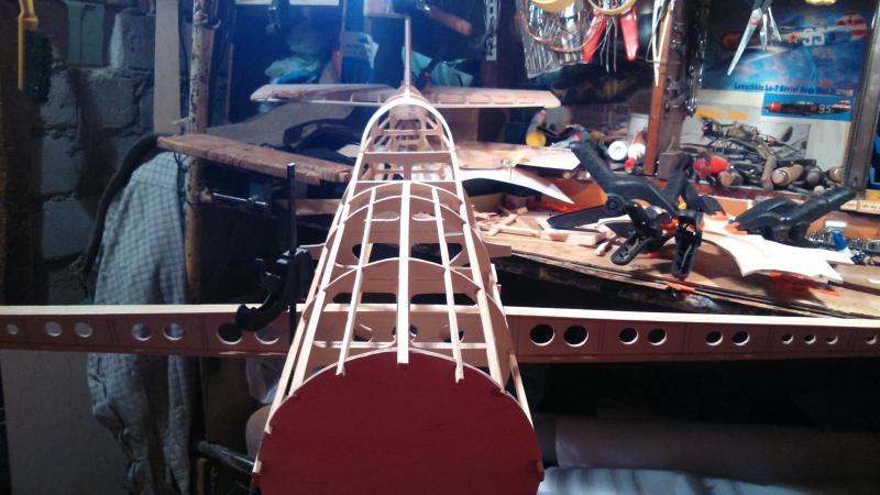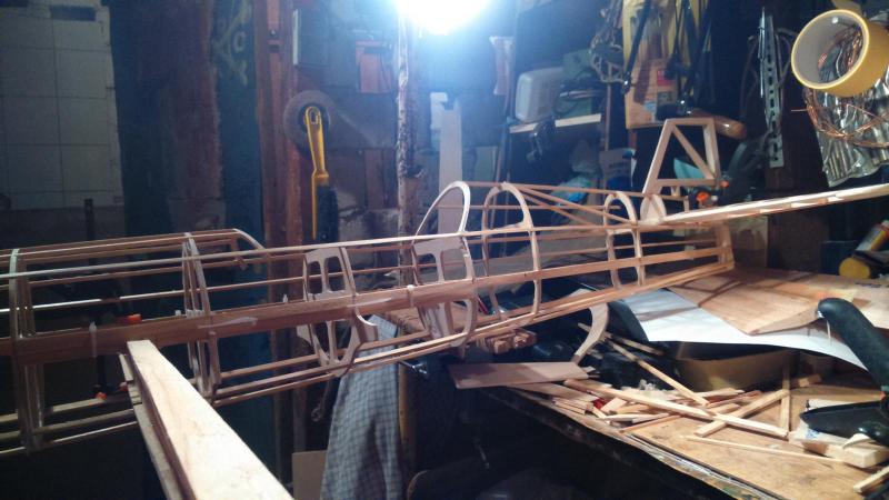 szczerze mówiąc, nie mam czasu na takie rozrywki od kiedy zacząłem działać z lotnictwem na poważnie. Z góry przepraszam że to nie jest to miejsce. Chciałem żeby docelowo był to akrobat 3D. Na dzisiaj, czyli to co widac na zdjęciu waga wynosi 360 gramów. Będzie to elektryk. Wyciągnęliśmy wnioski podczas budowy Ła-7, jest ciężki ale postaramy się żeby poleciał Podwozie zrobimy z kawałka aluminium wspomaganego prętem stalowym 4mm, dodam zdjęcie kiedy przyjadę do modelarni. Zastanawiamy się, jaki ustawić kąt natarcia skrzydeł, z uwagi na opór czołowy podwozia