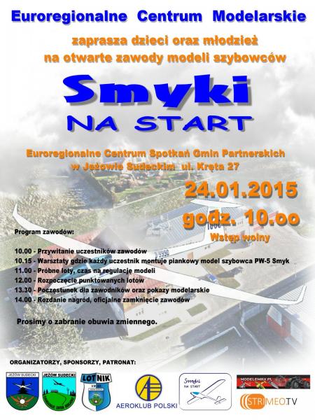W najbliższą sobotę 24 stycznia 2015 r.Euroregionalne Centrum Modelarskie z Jeżowa Sudeckiego zaprasza dzieci oraz młodzież na otwarte ogólnopolskie halowe zawody modeli latających " Smyki na Start"
