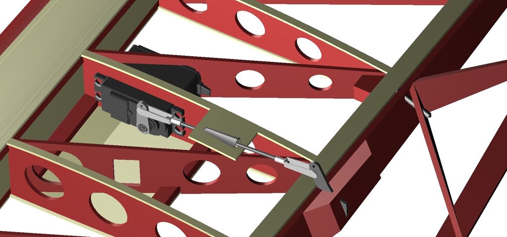 Podczas edytowania posta zabrakło informacji że rysunki są próbą rozrysowania tego rozwiązania w TurboCad. Dodałem jedynie dwuosiowy przegub mocujący amortyzator do kadłuba. Zamieszczona dzięki uprzejmości użytkownika forum - Pana Romana - (https://pfmrc.eu/profile/12522-romigraf/) fotografia pokazuje rozwiązanie oryginalne. -