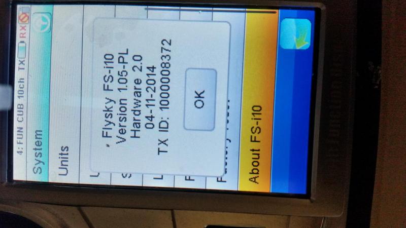Moja radość była chyba przedwczesna. W menu Rx setup nie mam zakładki "Set ASL pressure". Dane version i hardware: Niestety na stronie FlySky Download Center nie ma uprade z kodem PL bo być może to rozwiązałoby problem. Czy ktoś podłączał "altitude sensor" od TGY do zestawu z FlySky i 10 z version 1.05-PL?