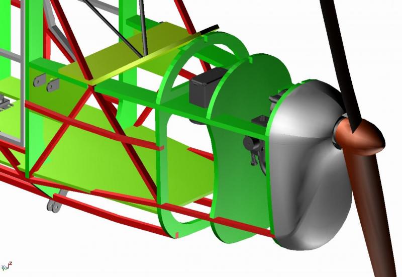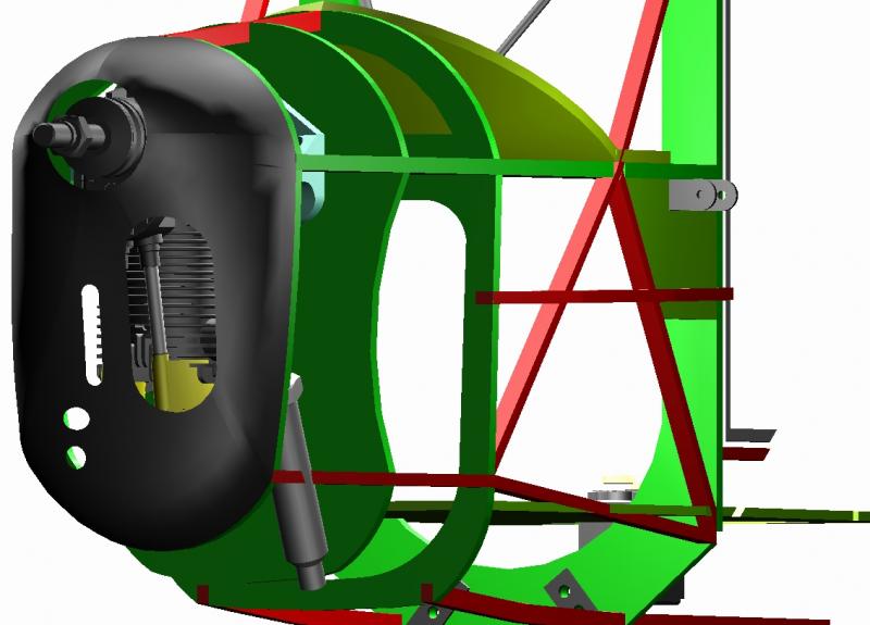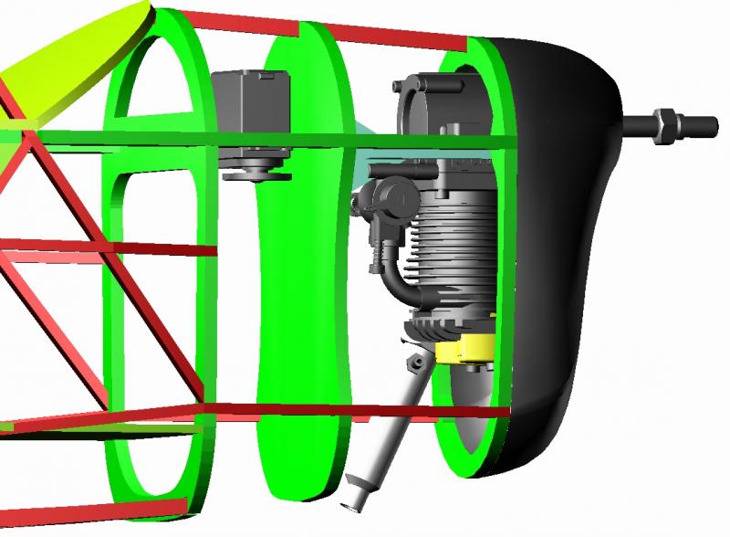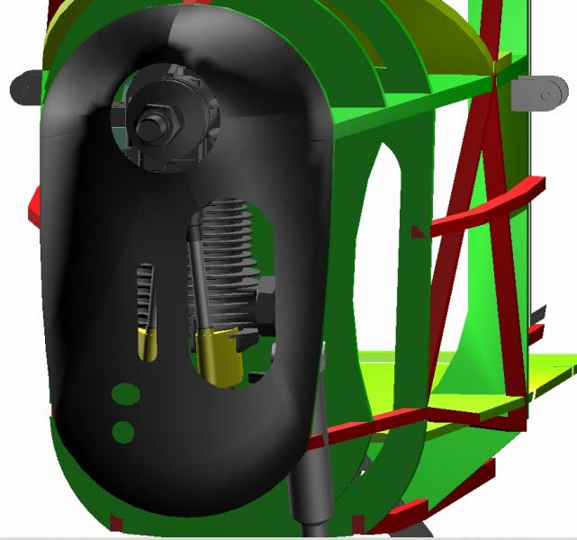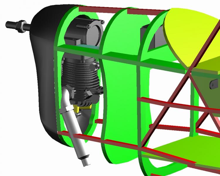 Przymiarka silnika SAITO FA 72. Niestety ma on boczny wydech i przez to jest troszkę ciasno. Mam kłopoty ze znalezieniem podobnego z wydechem tylnym ale pozostaje szukać dalej. Może Koledzy coś doradzą. -