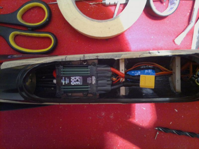 No ja też nie mogę się doczekać Mam nadzieję,że może w ten weekend się uda,bo jak narazie co zejde do piwnicy to zaraz ktoś mi znajdzie inne zajęcie..Dzisiaj wstępne ważenie i z tego co wychodzi to pakiet idzie nieco do tyłu,aż boję się myslec co będzie w drugim na przekładni bo dojedzie na dziób jeszcze ponad 100gram,ale mam nadzieje,ze jakoś się powciska.. Jutro ponawiercam całą półkę wiertłem 8.0 i zmniejsze wagę do minimum. Może wygląda to masywnie ale całość pod regiel i pakiet wyszedł kolo 20gram. Ale będzie pewne mocowanie i nic nie będzie się przesuwać..W klasie zawodniczej to pewnie niedopuszczalne ,ale mi to nie będzie przeszkadzać..Jak myślicie czy pakiet turnigy 2200 40C50 wytrzyma prądy 100A?
