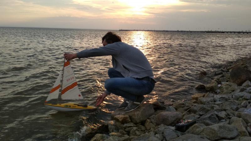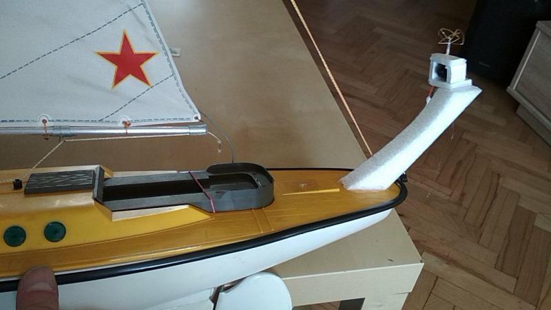 Radziecki jacht lat '80mankoot odpowiedział(a) na mankoot temat w Statki , okręty, okręty podwodne , żaglowce Dziś postanowiłem wsiąść na pokład .... Trochę bujało, ale i tak było nieźle .. A tak na poważnie, to pływać FPV z pokładu się nie da, przynajmniej w goglach. Krótka fala, mocno buja przód/tył, co powoduje nudności, przynajmniej u mnie. Nie mogłem wysiedzieć 5 minut w wiaderku na głowie. Może zwykły monitor by był lepszy. Zasięgu na wodzie nie sprawdzalem, Kamerka wyjęta z micro drona , 25 mW.