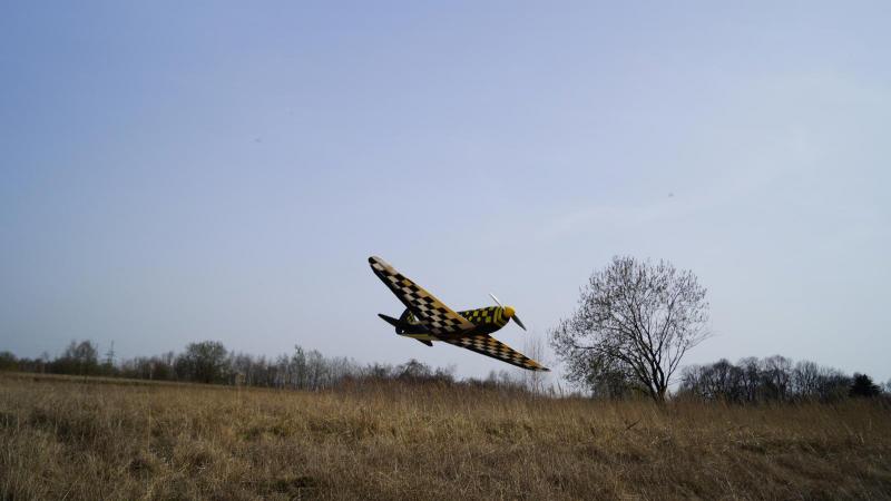 Slabo, albo i wystarczająco, zamiast pękniętego coro, jest rozklejony, gdzieś energia musi pójsć, a tak, 2 godzinki na szybki remont i gotowe. Przeszczep silnika z Łosia - Budget 2220/10 , śmigło 12/6 podróba APC, pakiet 3S 2650,mAh masa koło 1 kg, już ponownie nie ważyłem Wyrzut .... kilka kółek wysoko... a póżniej już jak zwykle Bez gazu szybuje rewelacyjnie, w porównaniu do spita z Flitetestu. Trochę brak kierunku, chyba się pokuszę o wstawienie jeszcze jednego serwa.