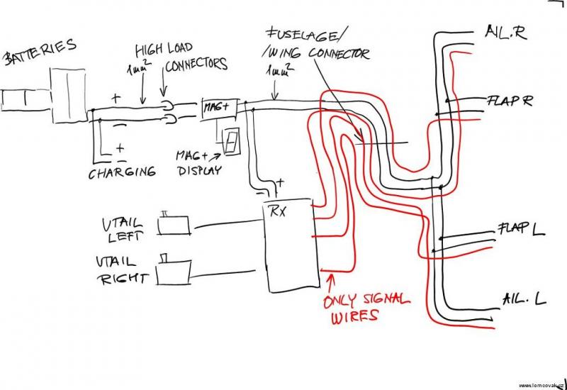 Oczywiście różnicowość w usterzeniu V jest niezbędna, żeby model w krążeniu ani nie zadzierał ani nie nurkował. Ustawiam to w taki sposób, że na początek biorę ustawienie 1 do ok. 0,8 i do tego podpinam regulację różnicowości na suwaku w nadajniku.