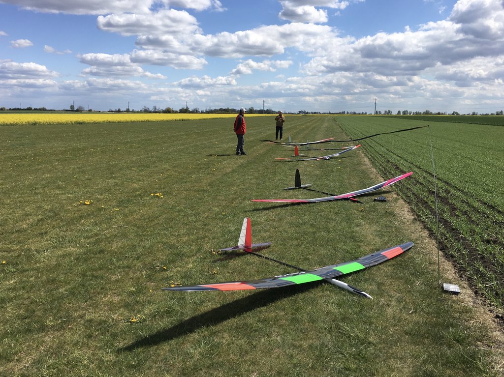 W okolicach Wrocławia udało nam się spędzić kilka godzin w przewiewnej aurze i w mega dynamicznej termice. Zgromadziło się kilku fascynatów, z zachowaniem dystansu społecznego, którzy wylatali dzisiaj wszystkie dostępne noszenia. W końcu można było zaczerpnąć dużo świeżego powietrza, odkurzyć modele i wesoło spędzić czas. Termika była bardzo gwałtowna i zabierała bardzo szybko, jak tylko w nią się wlatywało. Jeszcze łątwiej było ją zgubić. Z wiatrem, osiągane wysyokości były kosmiczne, a niektózy łapali je z 50-80m. Świetny dzień Było nas tyle ile modeli + jedna małżonka